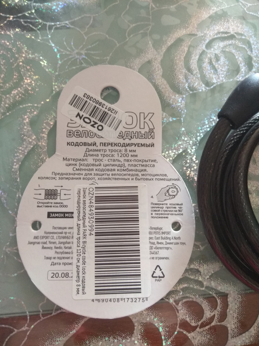 Надежный кодовый велосипедный замок обеспечивает максимальную защиту велосипеда от кражи благодаря стальному тросу, который изготовлен по специальной технологии плетения из тоненьких стальных проволочек. Качественный запорный механизм из металла с четырех