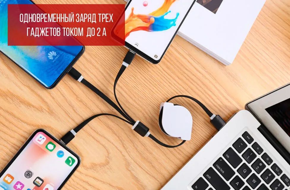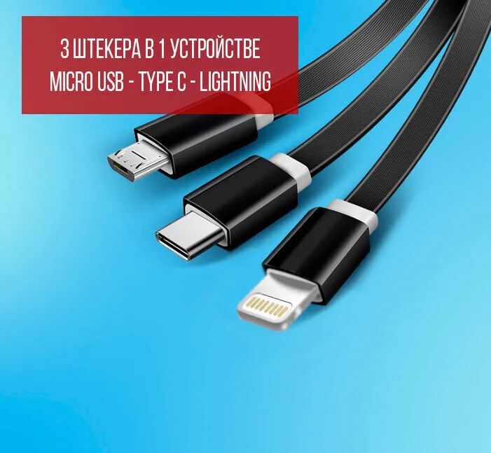 Универсальный кабель предназначен для быстрого заряда различных устройств с типами входа Micro-usb / Lightning / Type-C. Аксессуар совместим с большинством гаджетов на платформе iOS и Android.Тип USB-порта: СтандартМатериал: Термопластичный эластомер, Чис
