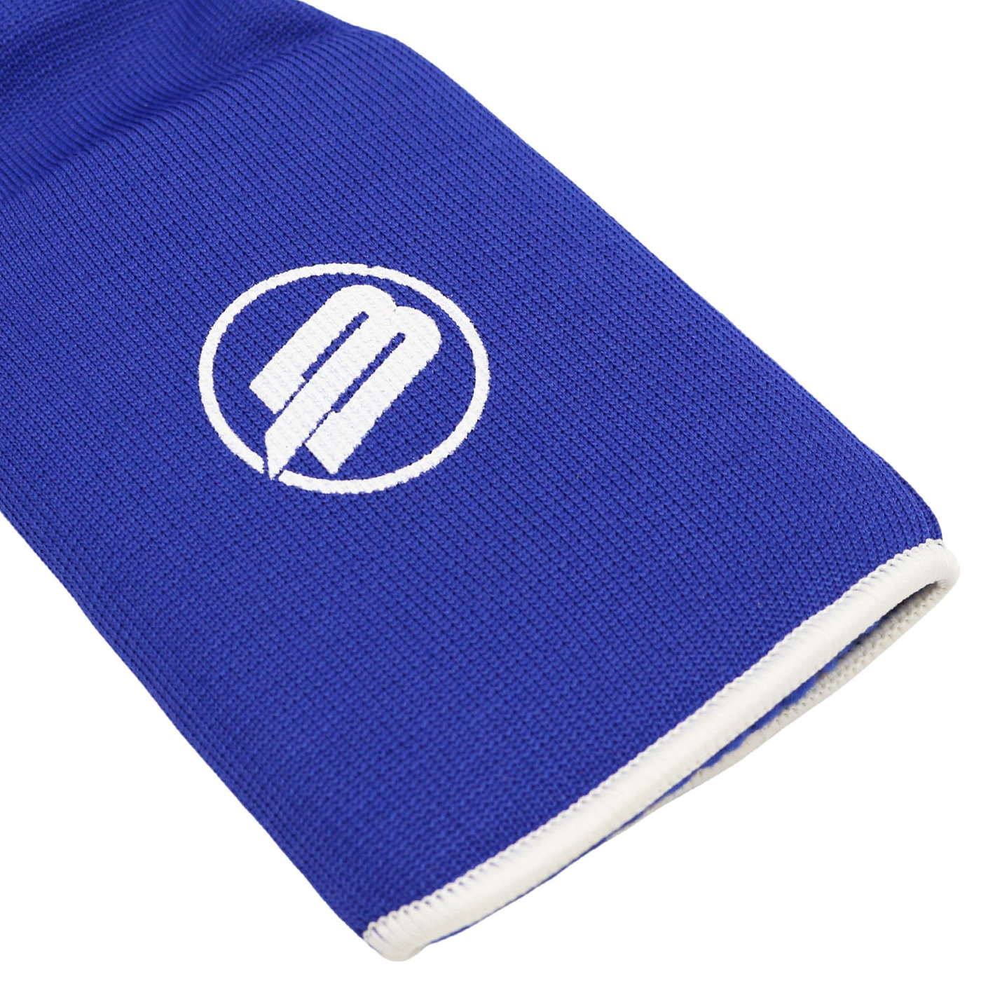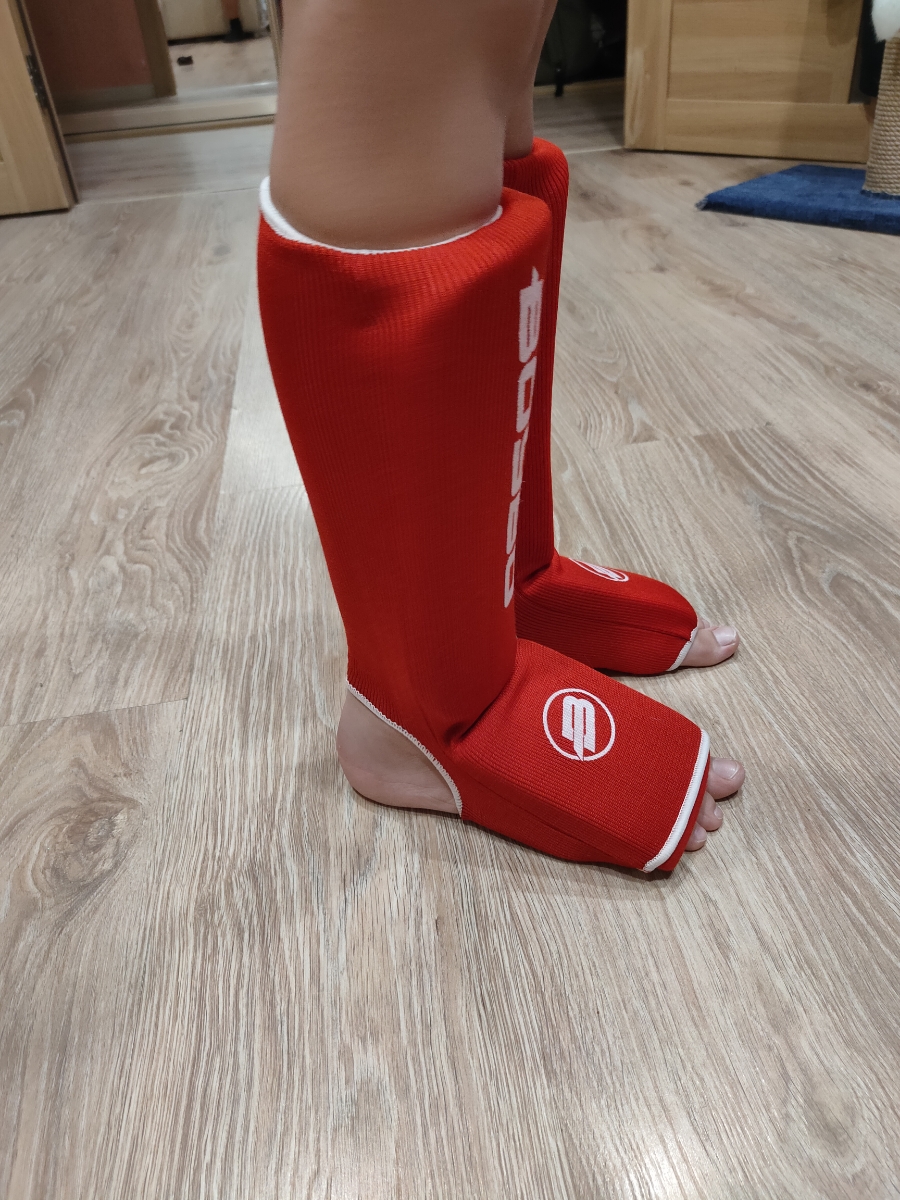 защита на ноги для единоборств выполнена из хлопка и эластана с двумя защитными вставками из изолона (пенополиэтилена).защитный щиток надевается на ногу как чулок, липучки-фиксаторы (фиксаторы для щитков) не предусмотрены.Пальцы ног открыты.Защитные встав