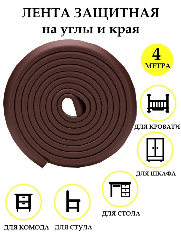 Накладка на углы из плотного мягкого материала EVA предотвращает получение детьми травм и ушибов при случайных ударах о выступающие края мебели. Клейкая лента Beideli крепится на столы, стулья, тумбочки, полки, спинки и бортики кроватей. Двойной скотч в к