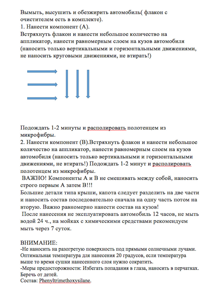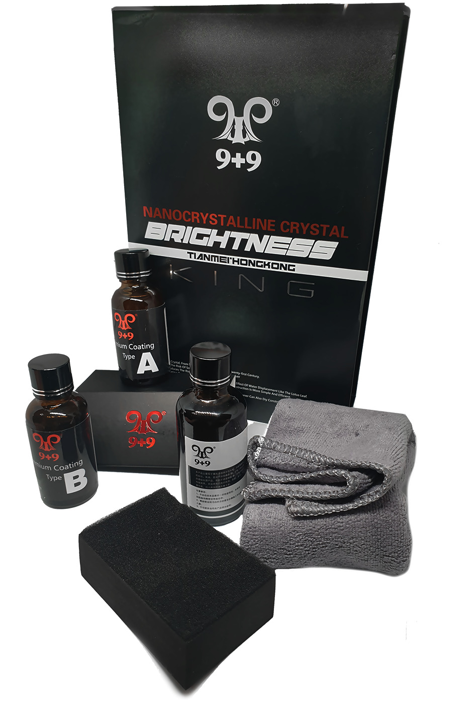 Комплектация:1. очиститель обезжириватель.2. компонент А 30 мл.3. компонент В 30 мл.4. апликатор для нанесения 5. полотенце микрофибра.Описание:Защитное двухкомпонентное нанокерамическое покрытие 9H+9H 30 мл,Обеспечивает стойкую, долговременную защиту и н