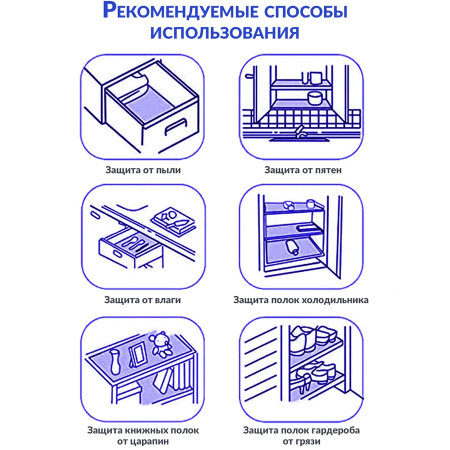 Список совместимых устройств:Набор защитных ковриков для полок холодильника и кухонных ящиковКомплектация:6 ковриковОписание:Надоело постоянно мыть холодильник? Тогда расположите на его полочках антибактериальные салфетки, которые легко поддаются чистке.