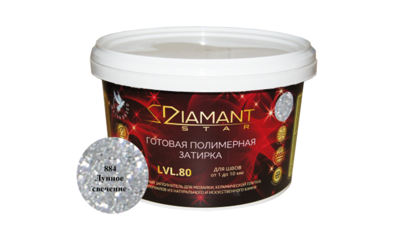 Готовая полимерная затирка DIAMANT STAR LVL.80 самая простая и удобная технология нанесения, исключает ошибки затворения, смешивания и очистки поверхностей.Нет аналогов на рынке. На основе инертного светопреломляющего кристаллического наполнителя. Шов от