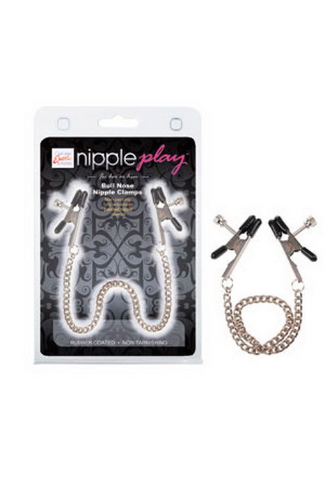 Состав:не содержащее никель железо, ПВХОписание:Nipple Play Bull Nose Nipple Jewelry - регулируемые зажимы на соски в виде прищепок с цепочкой. Они изготовлены из несодержащего никеля железа. Кончики зажимов оснащены мягкими, удобными подушечками из ПВХ.