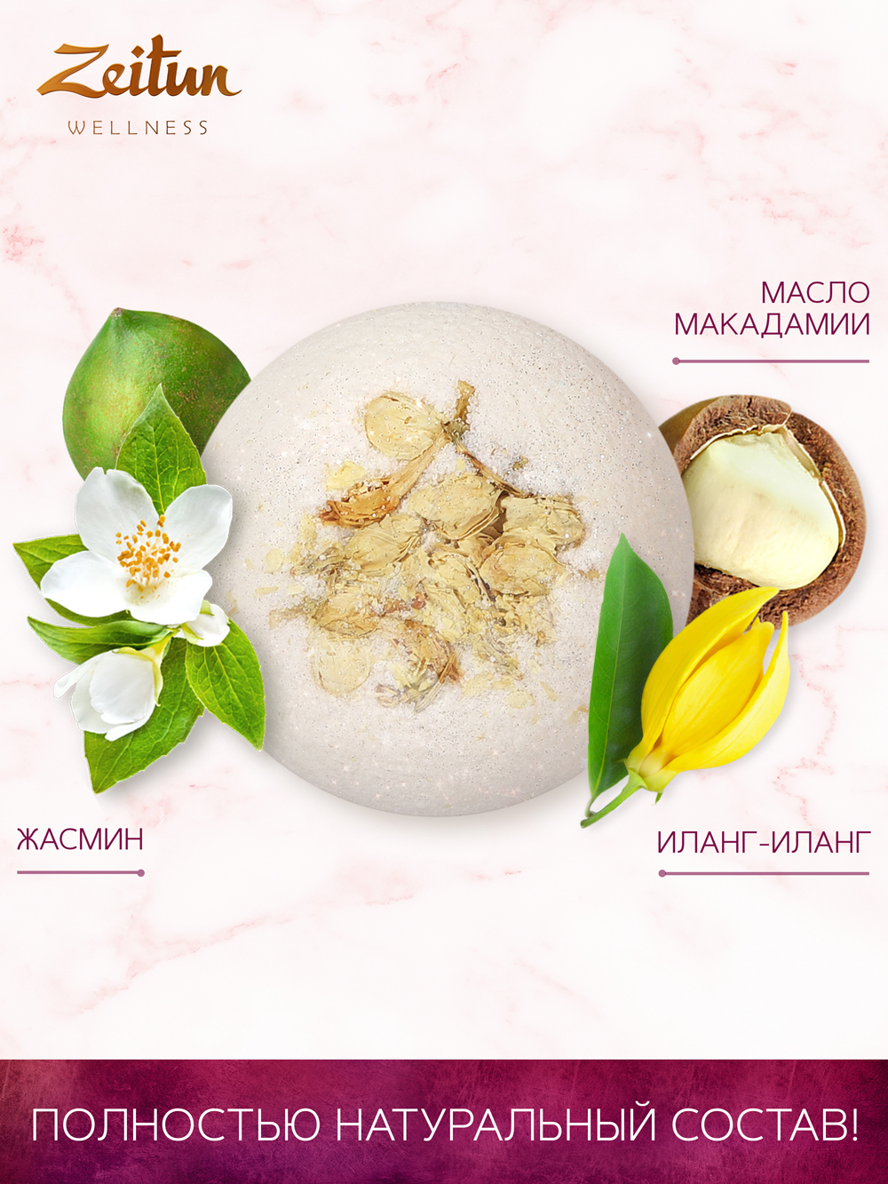 Бомбочка для ванны линии “Ритуал Соблазна” подарит вам новые эмоции и впечатления, превратит обычные вечерние процедуры в волшебный SPA-уход. Она наполняет воду чувственным ароматом жасмина и иланг-иланга, обогащает питательным маслом макадамии. Бурлящая