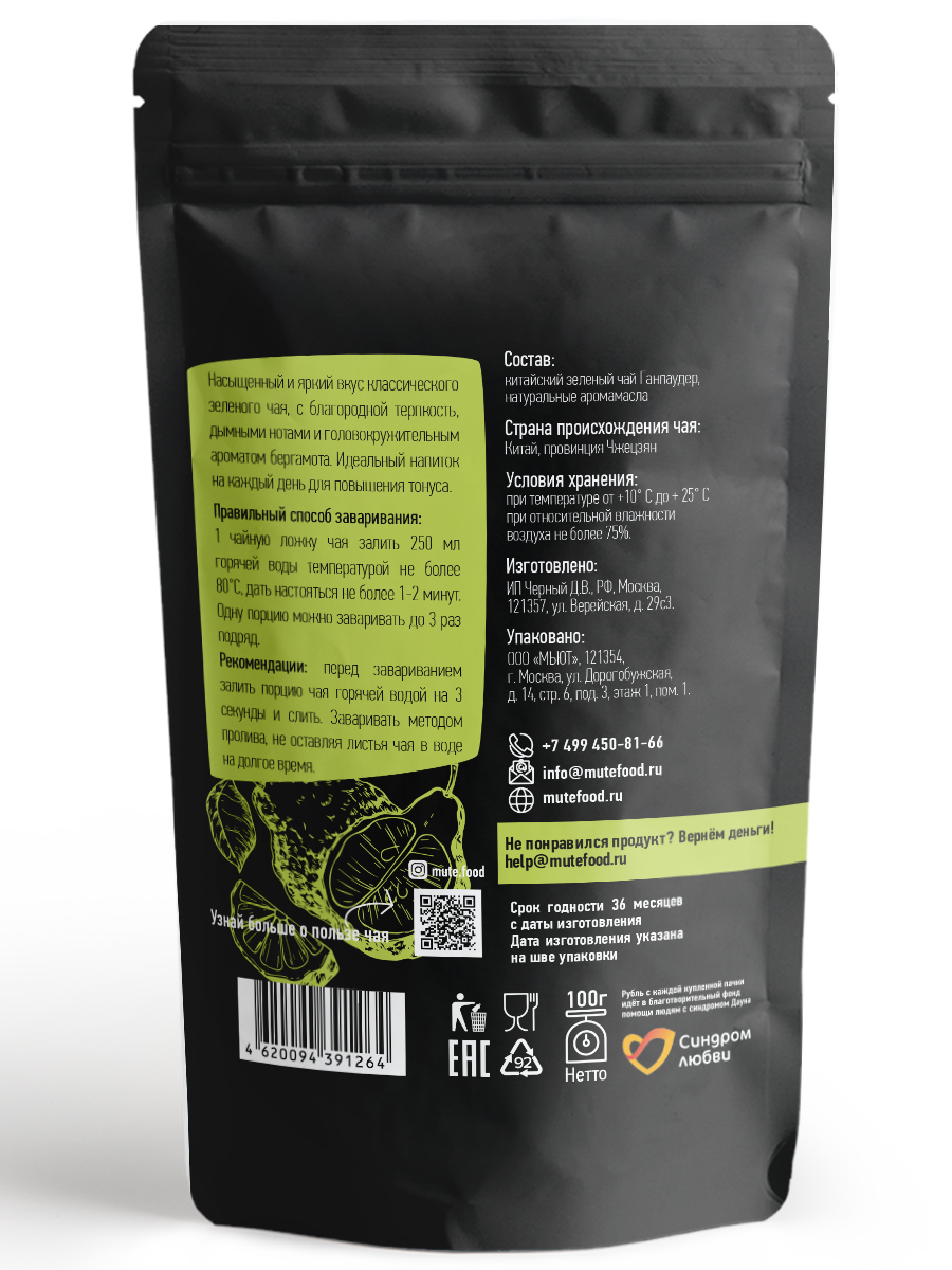Условия хранения:Хранить в плотно закрытой упаковке в прохладном, темном месте, ограничивая воздействие высоких температур, влажности, солнечного света и посторонних запахов.Состав:Цельнолистовой зеленый чай Ганпаудер, натуральные аромамаслаКомплектация:к
