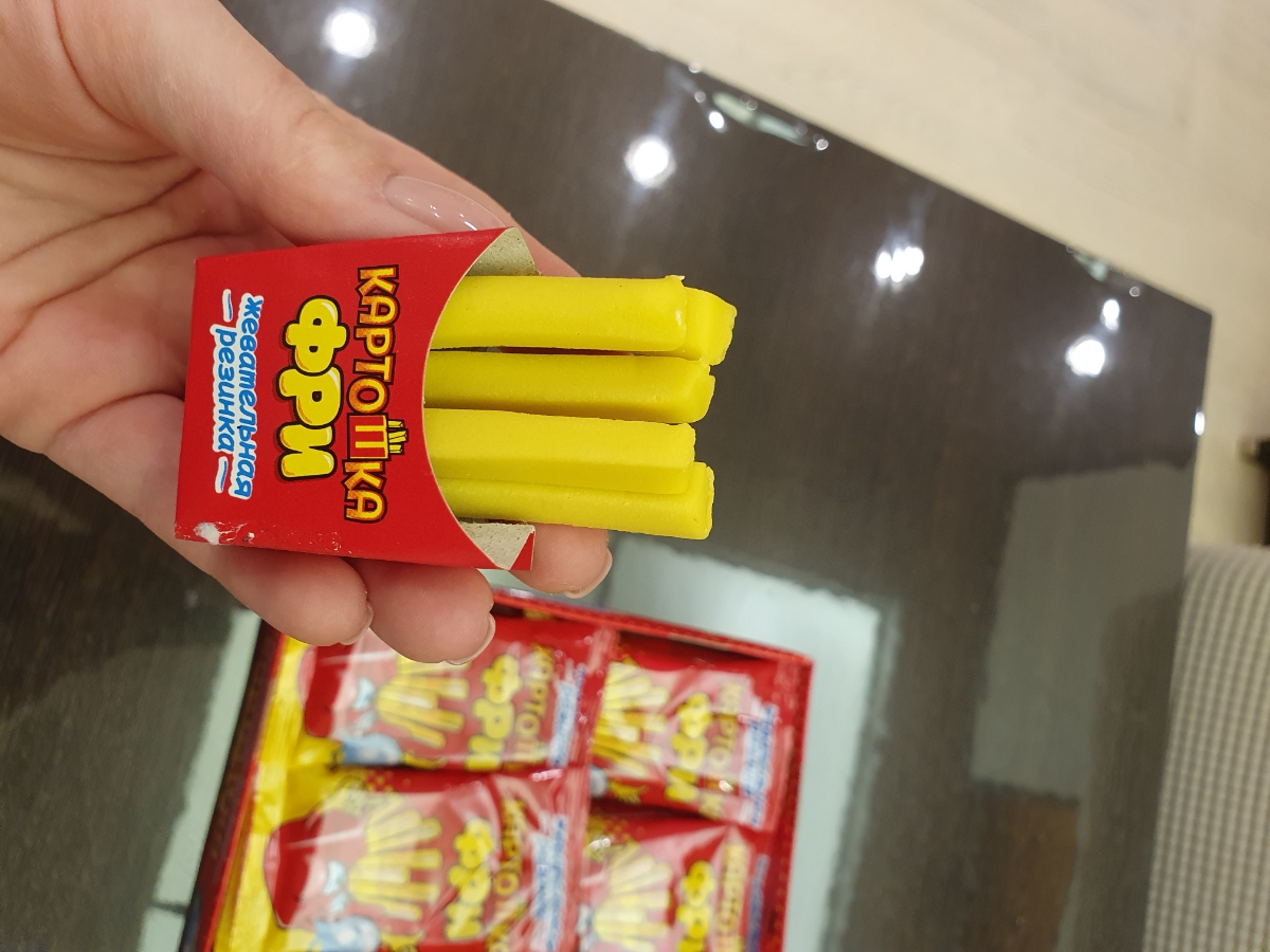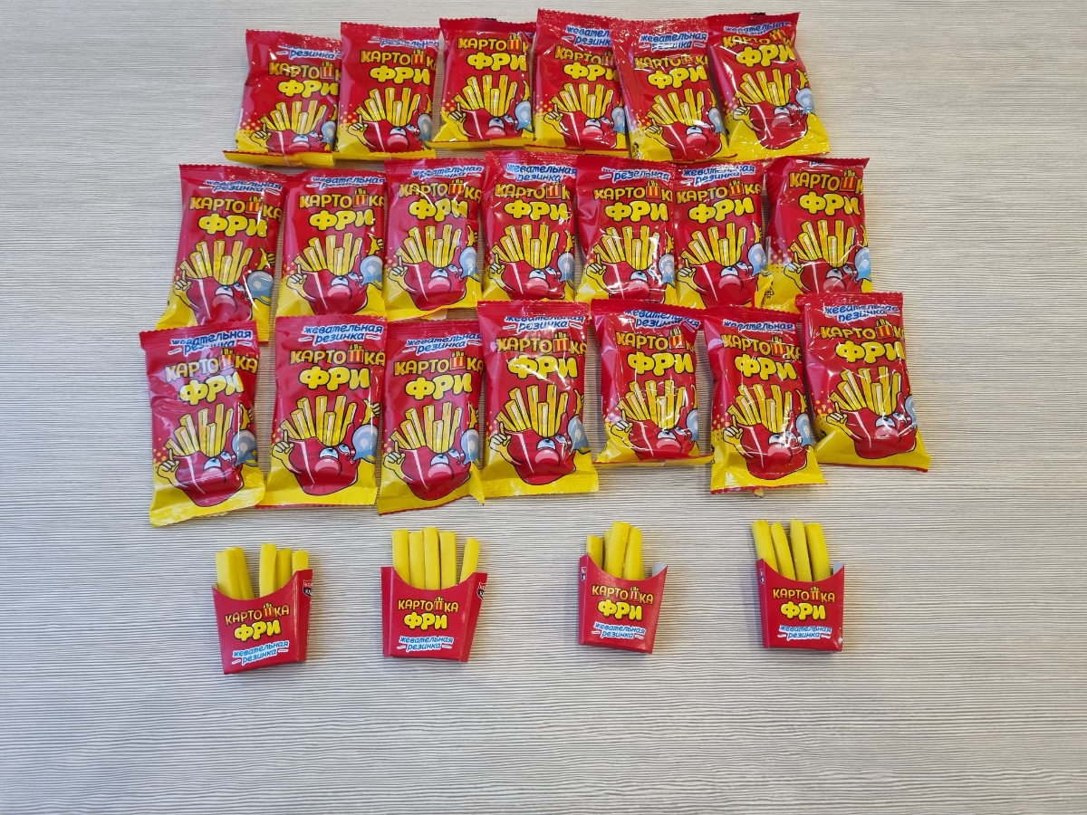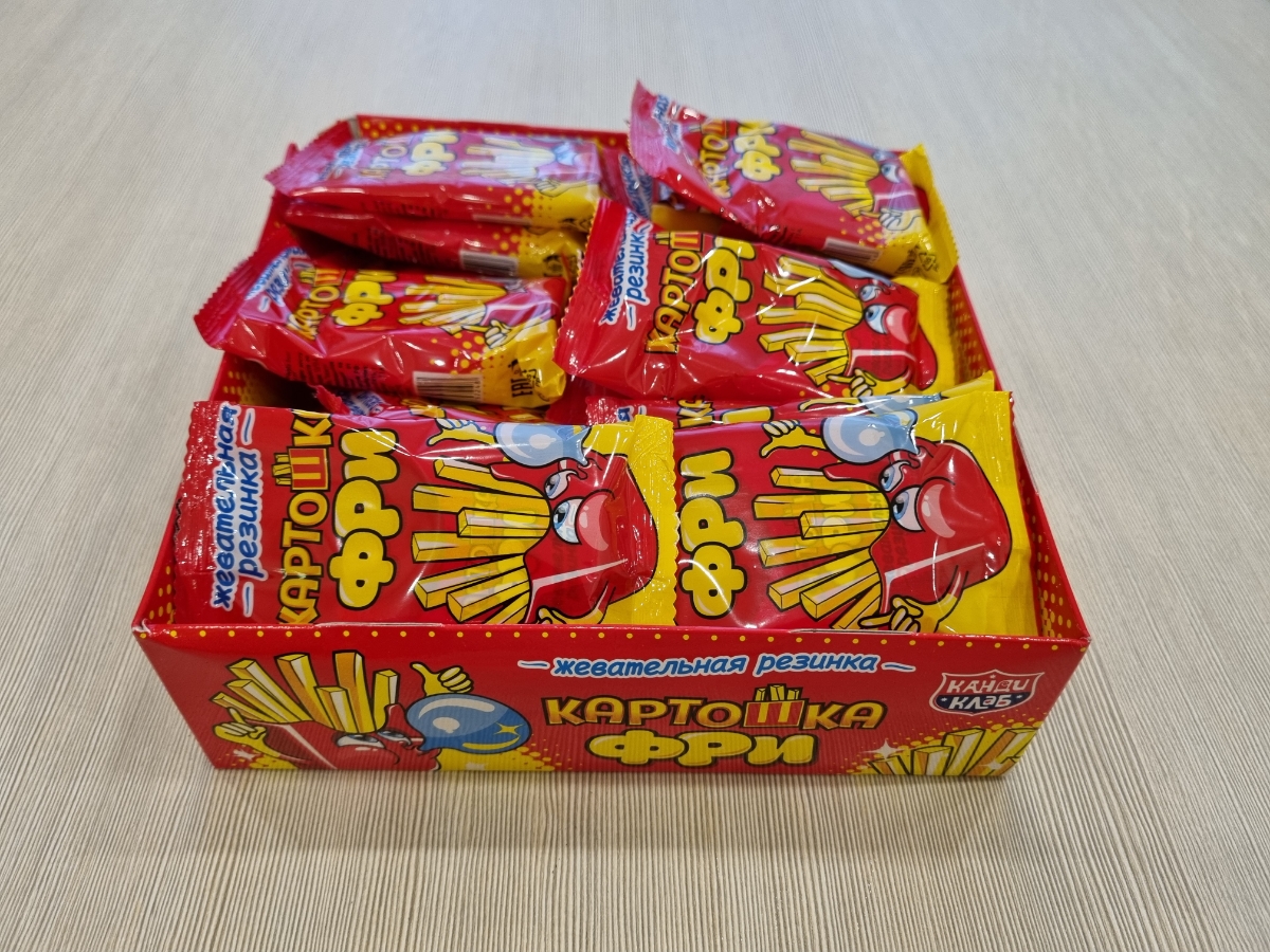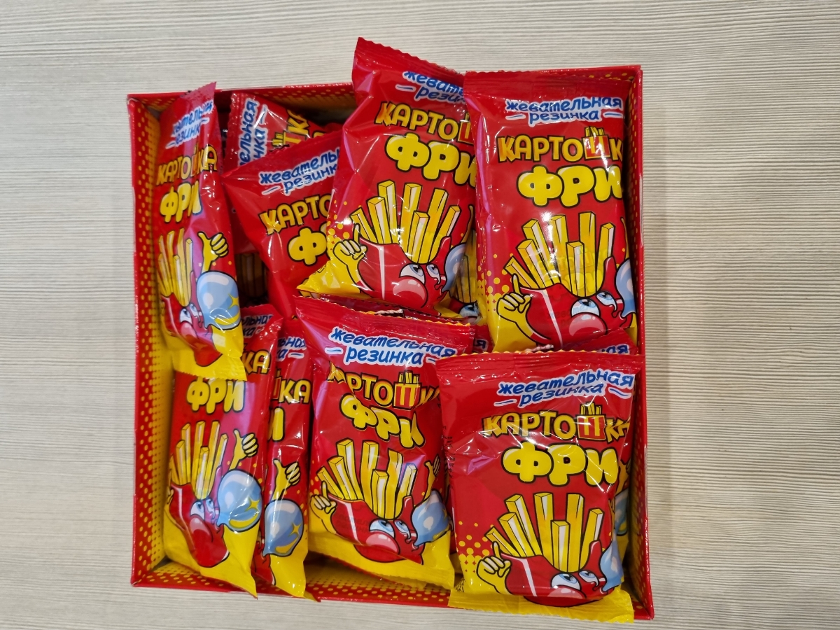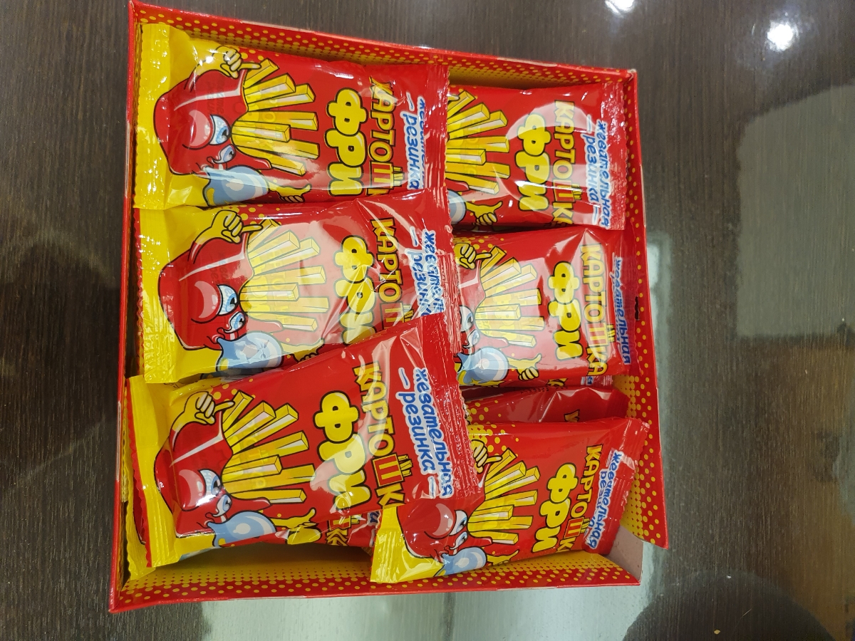 Условия хранения:Хранить в сухом и прохладном месте при температуре от 1 °С до 25 °С и относительной влажности воздуха не более 75%. Избегать попадания прямых солнечных лучей.Состав:Сахар, резиновая основа, глюкозный сироп, глюкоза, ароматизатор (тутти-фр