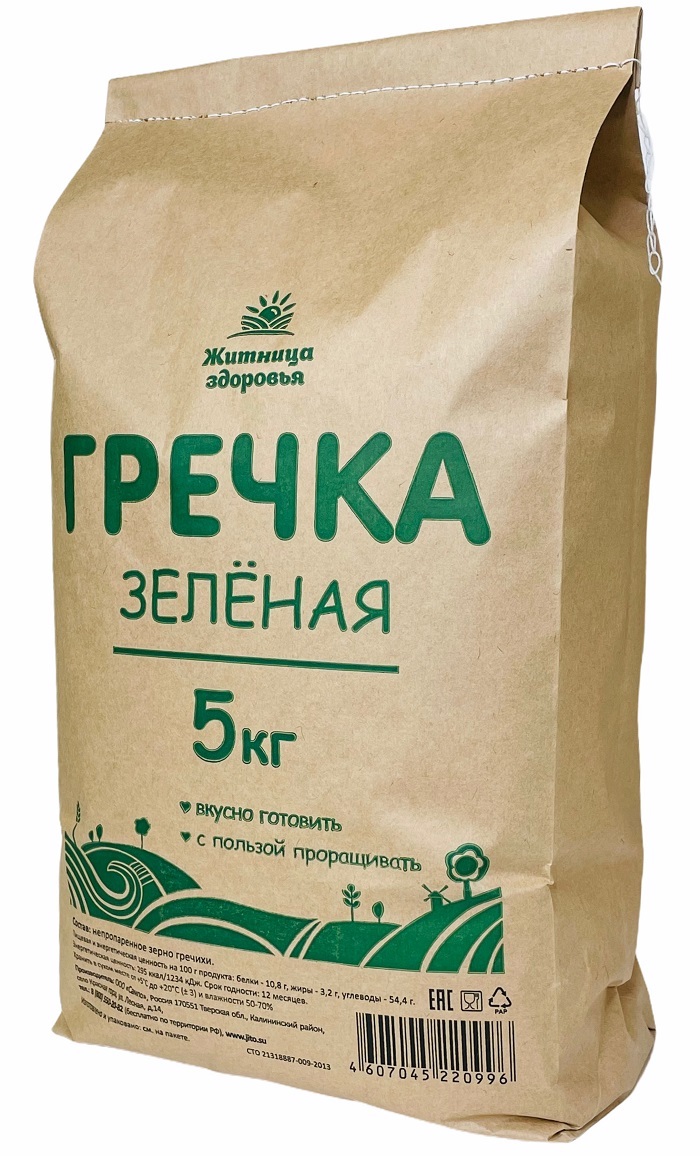 Условия хранения:В сухом месте. Избегать прямых солнечных лучей.Состав:Гречка зеленая.Описание: