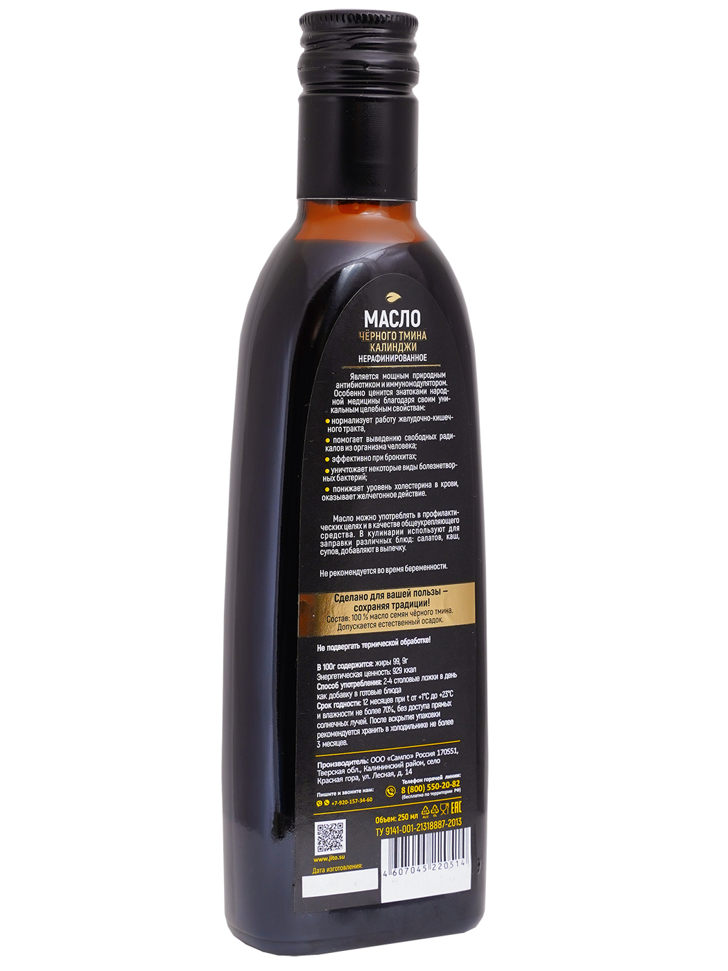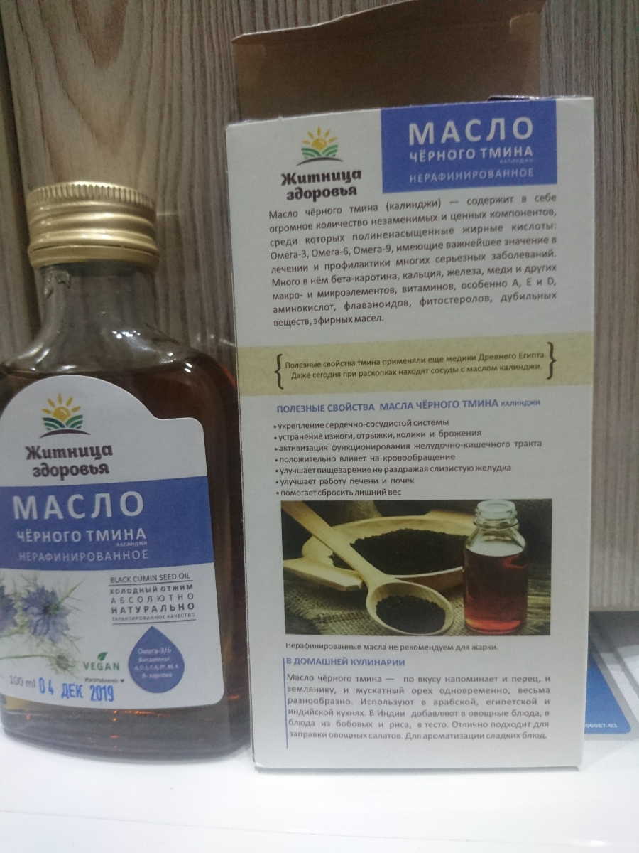 Условия хранения:Хранить при температуре не выше +25°С и относительной влажности не более 75%. После вскрытия хранить плотно закрытым, в темном, сухом, прохладном месте.Состав:100% масло семян чёрного тмина (калинджи). Не фильтрованное.Описание:Оцените эт