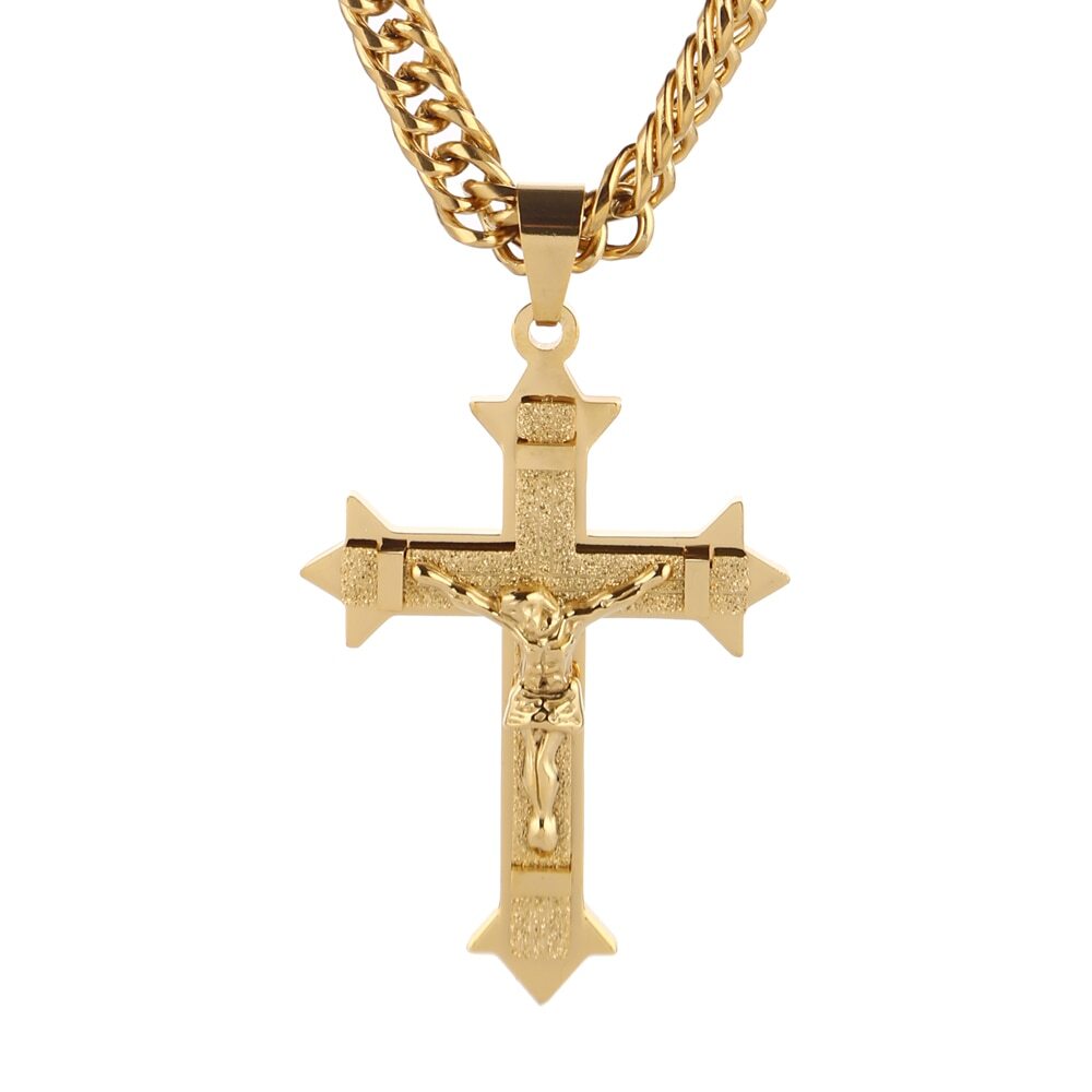 Золотой тон Крест Христос Иисус кулон ожерелье звено из нержавеющей стали rolo цепь тяжелые мужские ювелирные изделия подарок 21,65 дюйма 7 мм