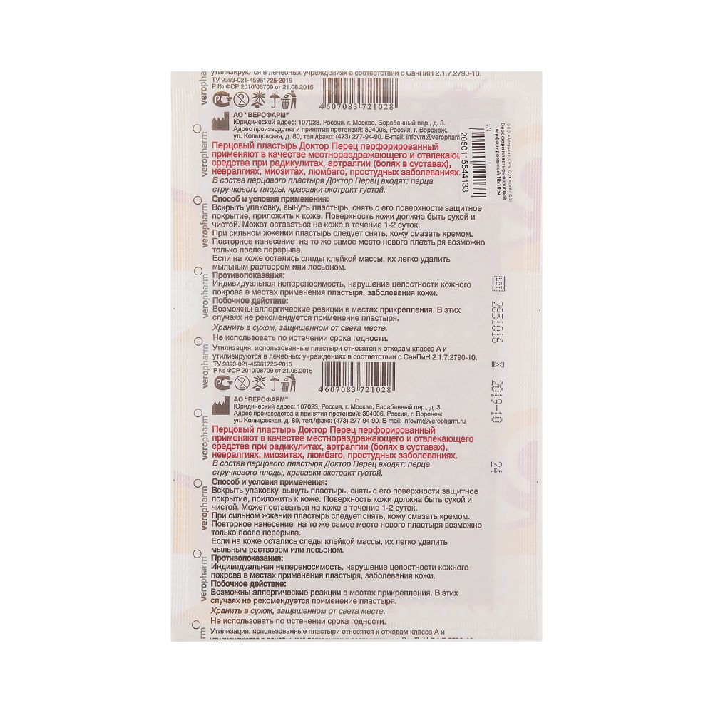 Верофарм пластырь Доктор перец перцовый перфорированный 6х10см