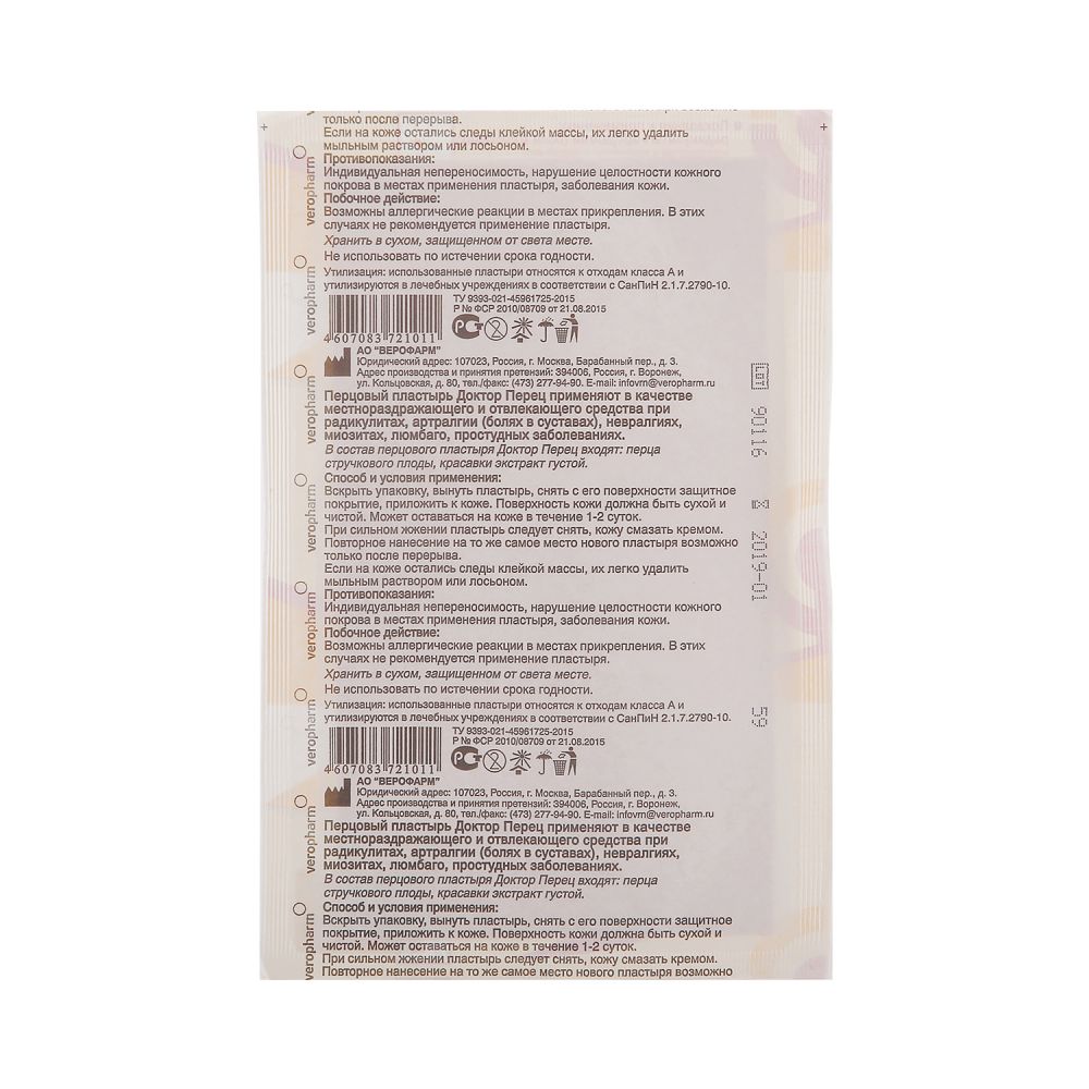 Верофарм пластырь Доктор Перец перцовый 6х10см