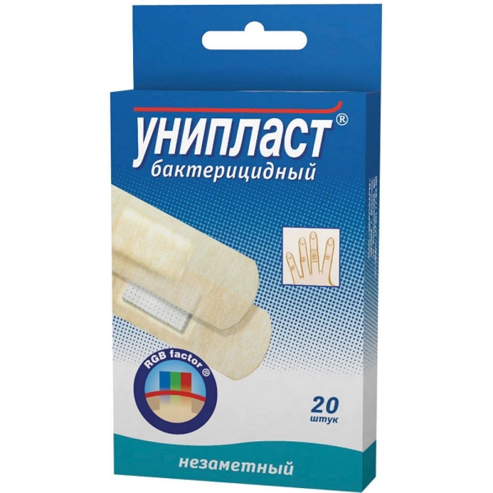 Лейкопластырь унипласт бактерицидный натуральный 1,9х7,2 см 20 шт.