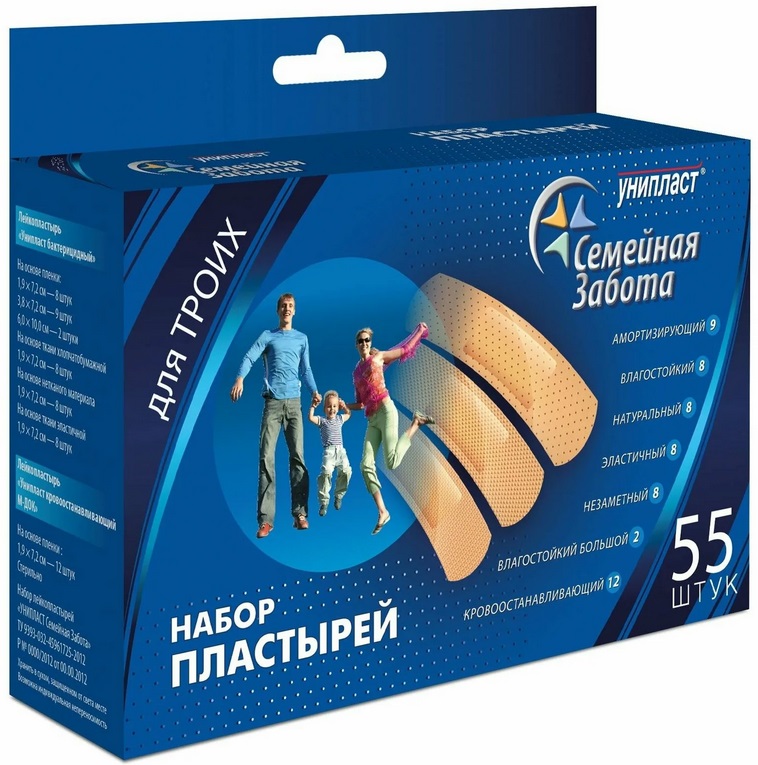 Лейкопластырь унипласт набор семейная забота 55 штук