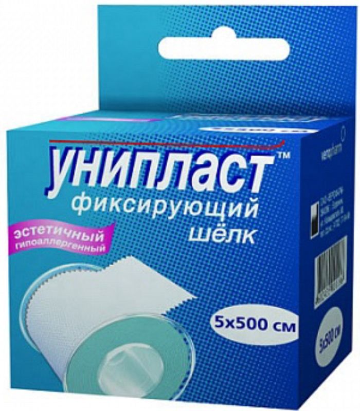 Унипласт пластырь фиксирующий, 5х500см, пластырь, на шелковой основе