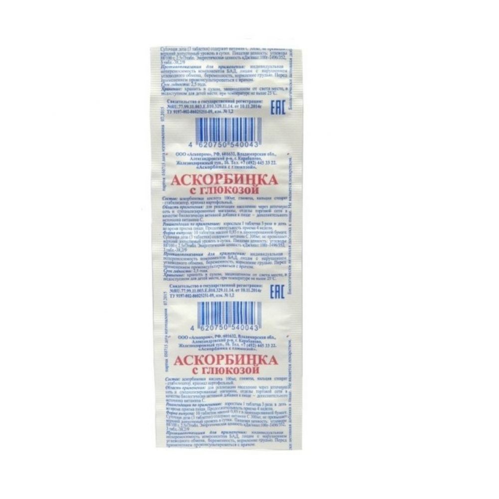 Аскорбиновая к-та с глюкозой таб. 850мг №10 БАД