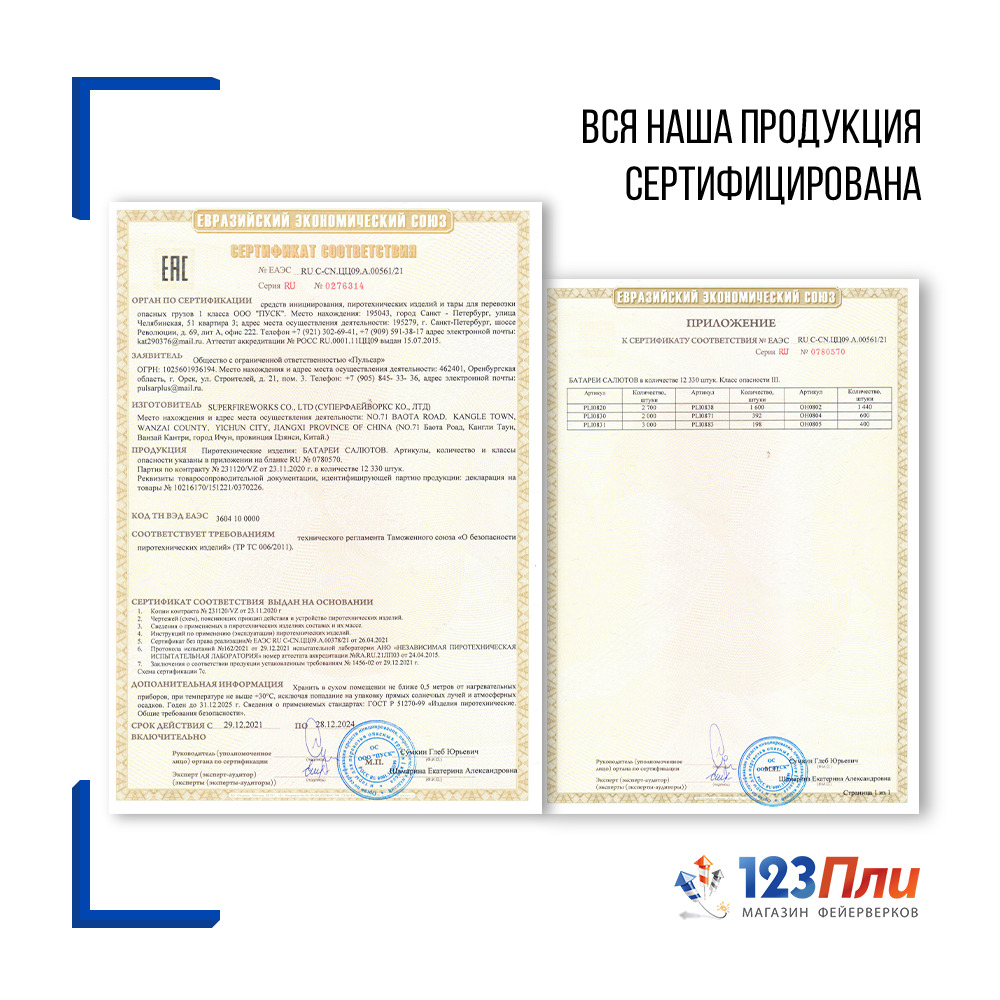 Батарея салютов 123Пли Самый лучший день / фейерверк / 30 залпов