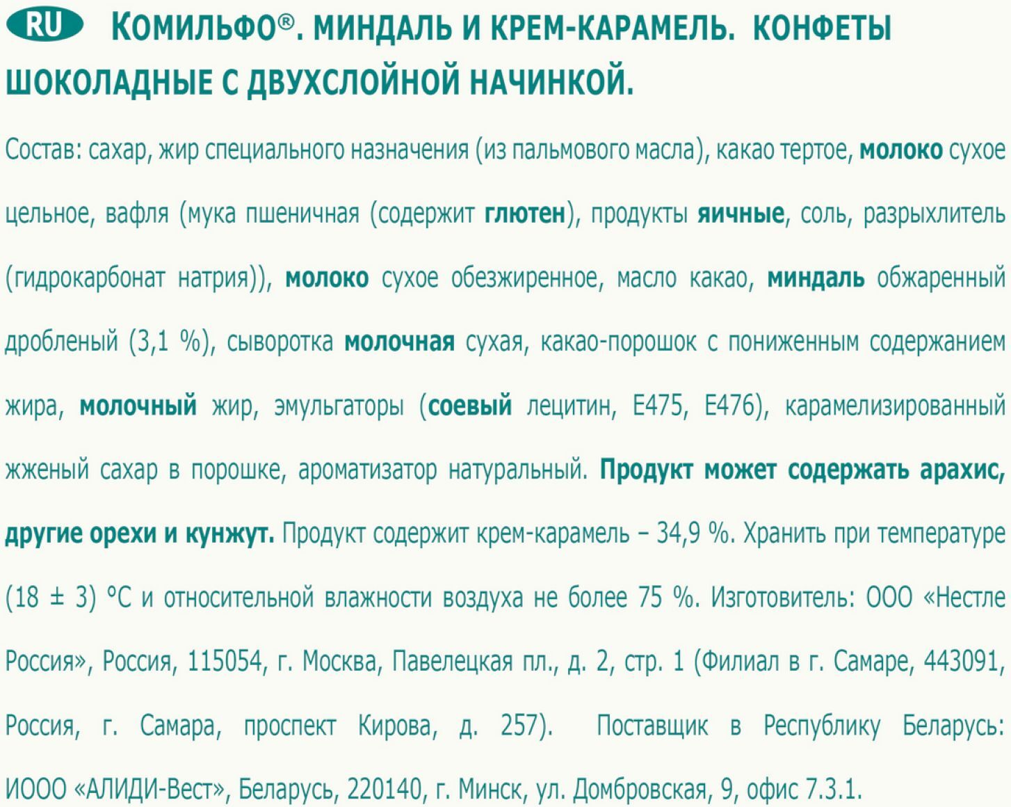 Конфеты шоколадные Комильфо Миндаль и крем-карамель, с двухслойной начинкой, 116 г