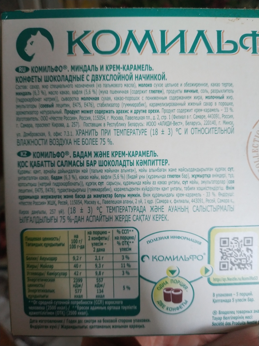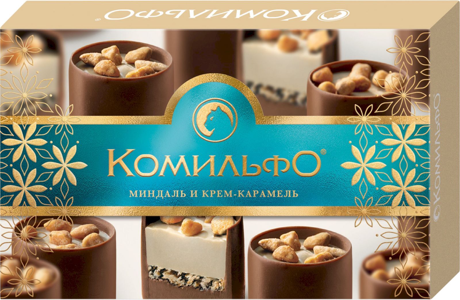 Конфеты шоколадные в коробке Комильфо, миндаль и крем-карамель, с двухслойной начинкой, 116 г