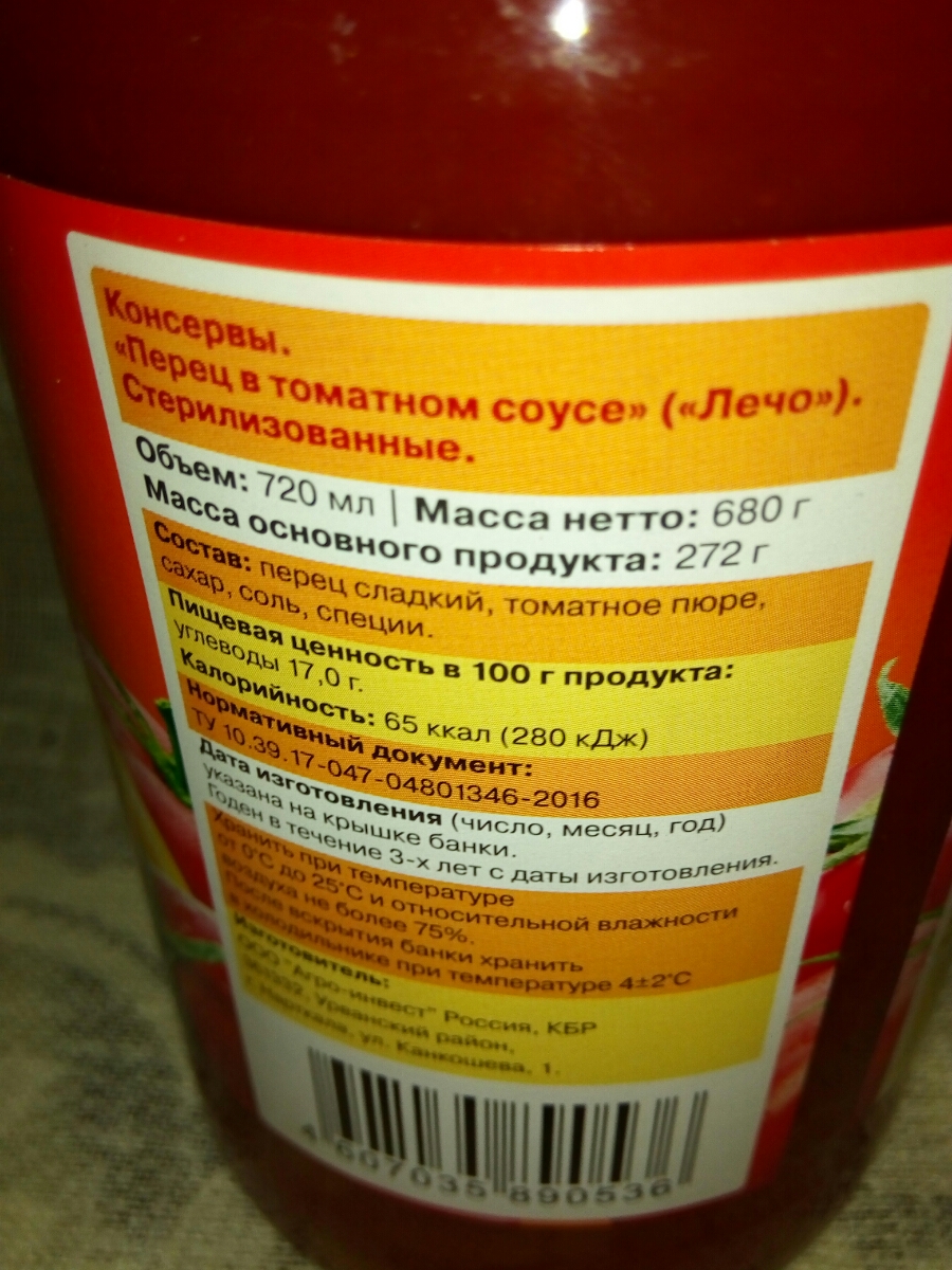 Лечо Сладкий перец Помидорка стеклянная банка 480 мл