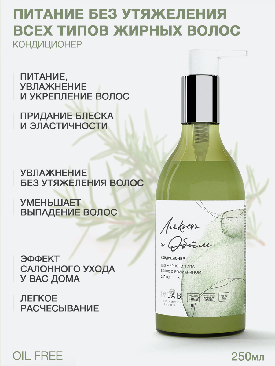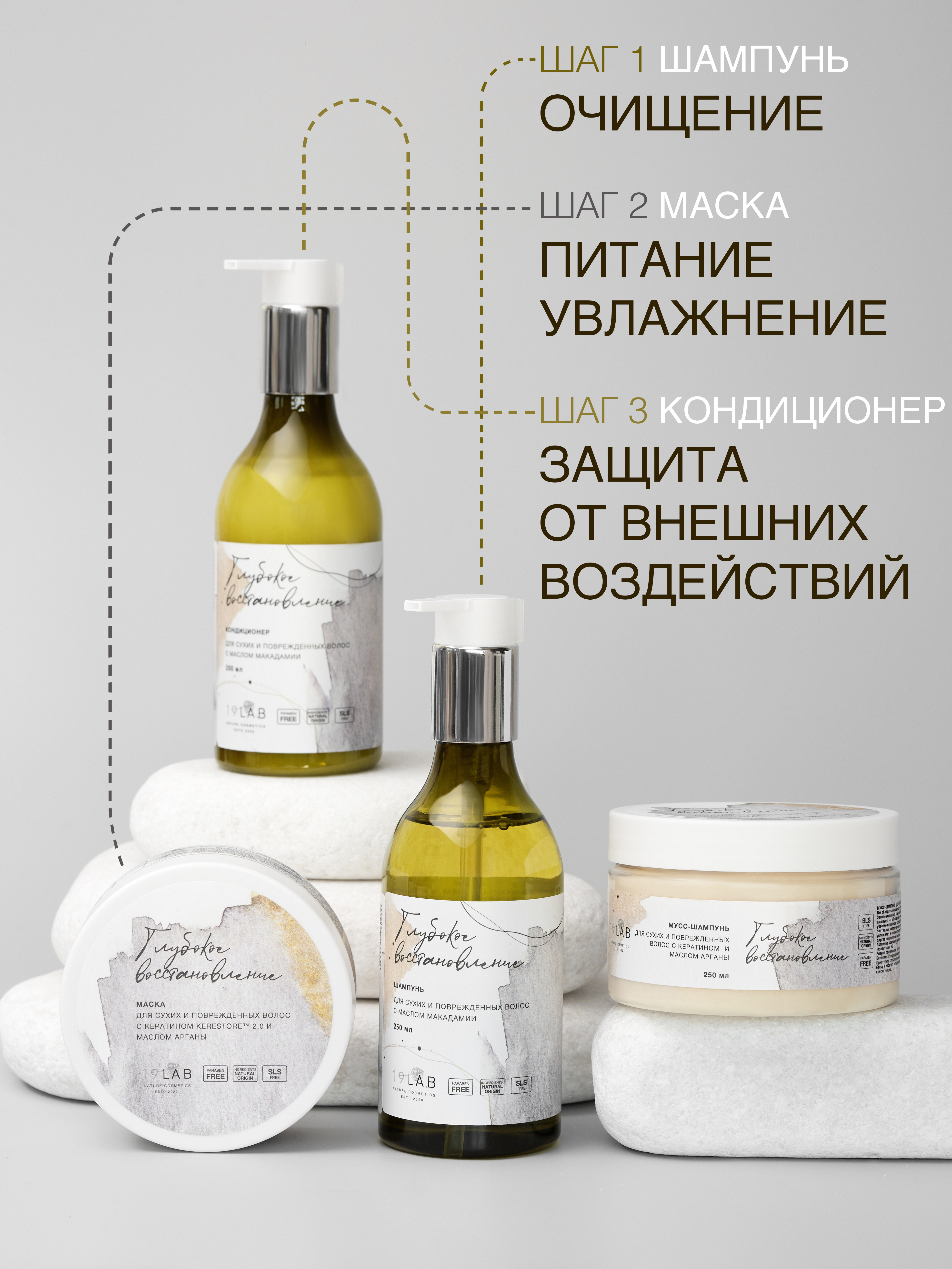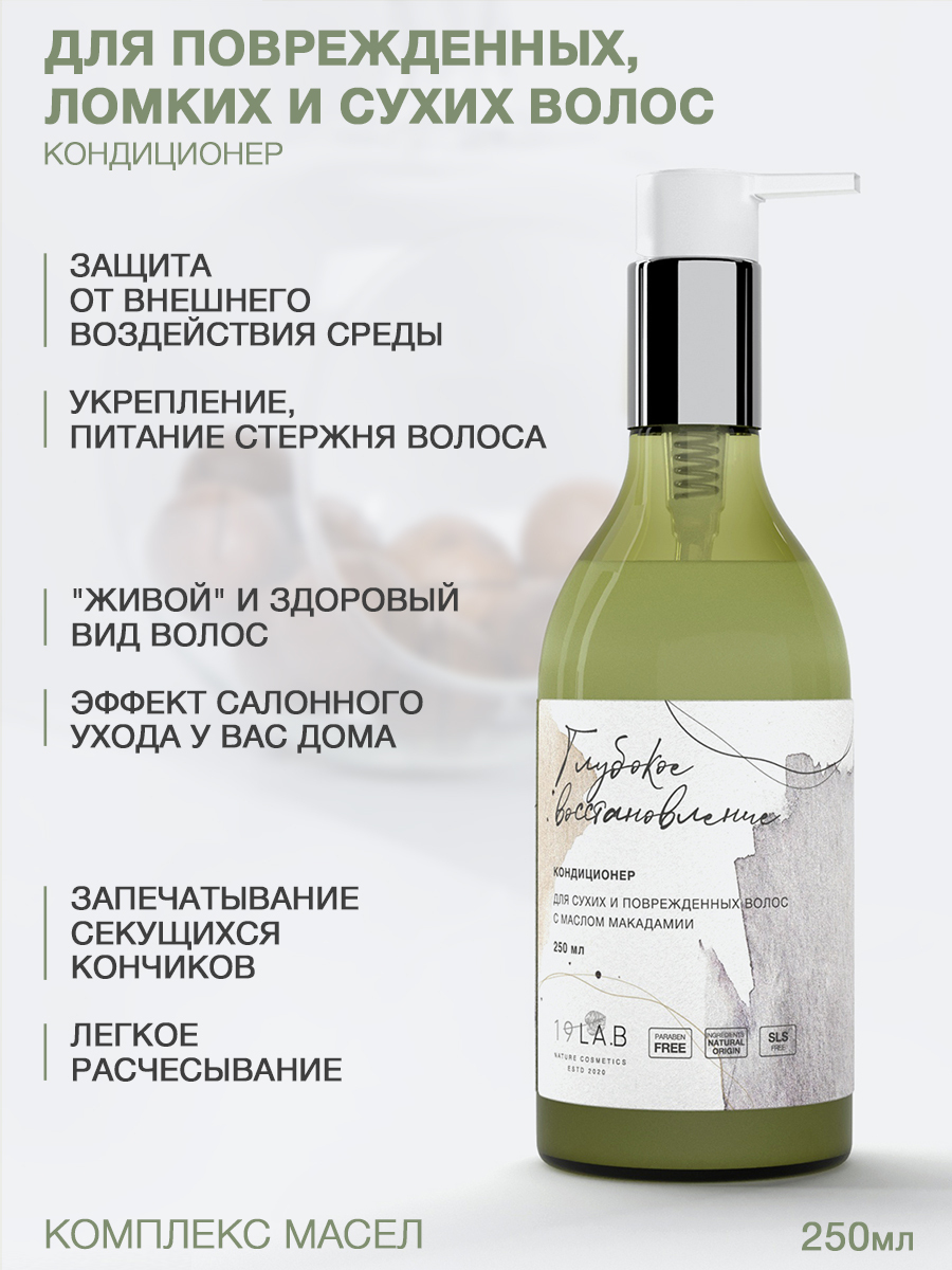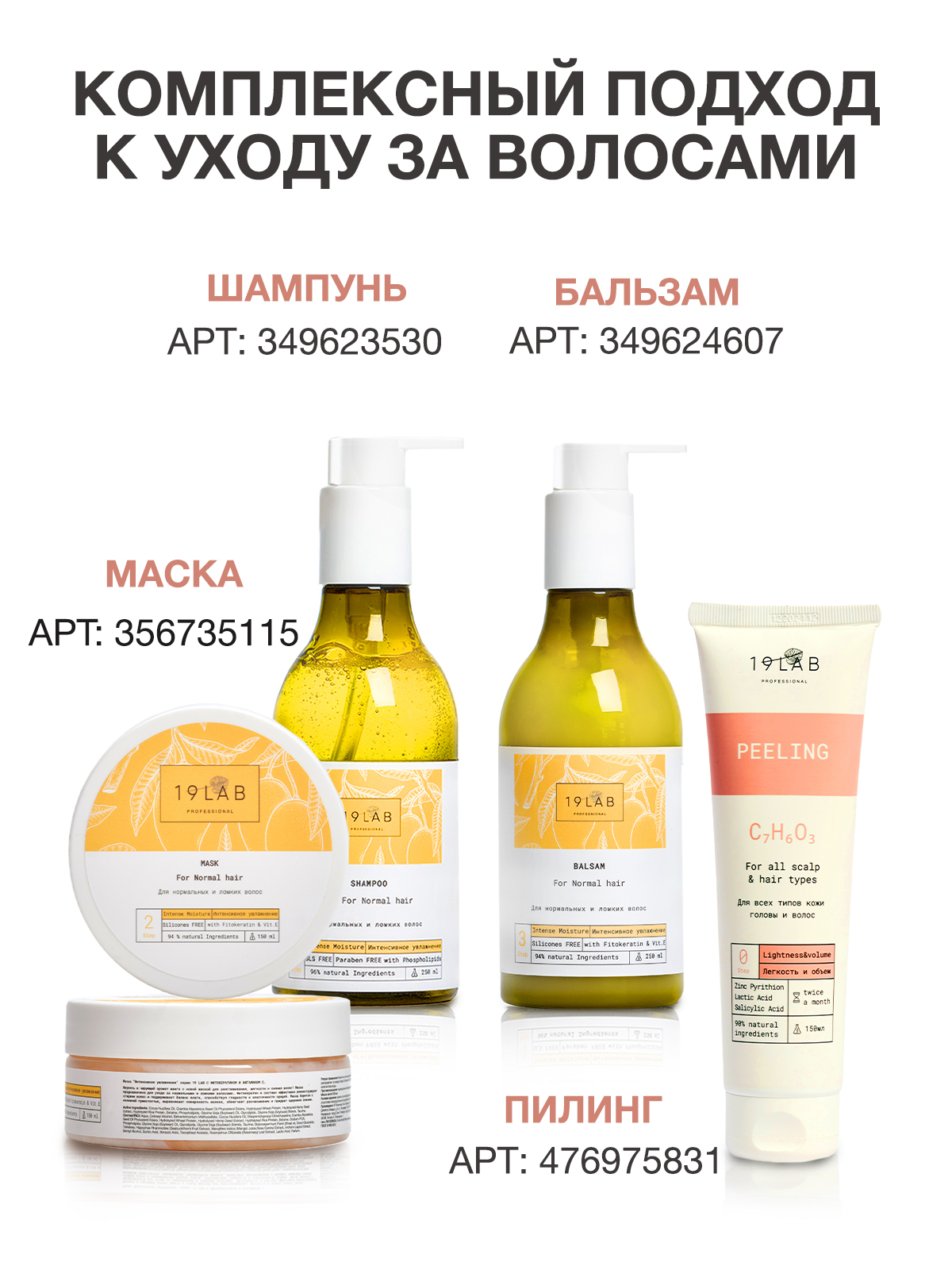 19Lab Бальзам для волос нормальных и ломких, бессульфатный профессиональный кондиционер, 250 мл