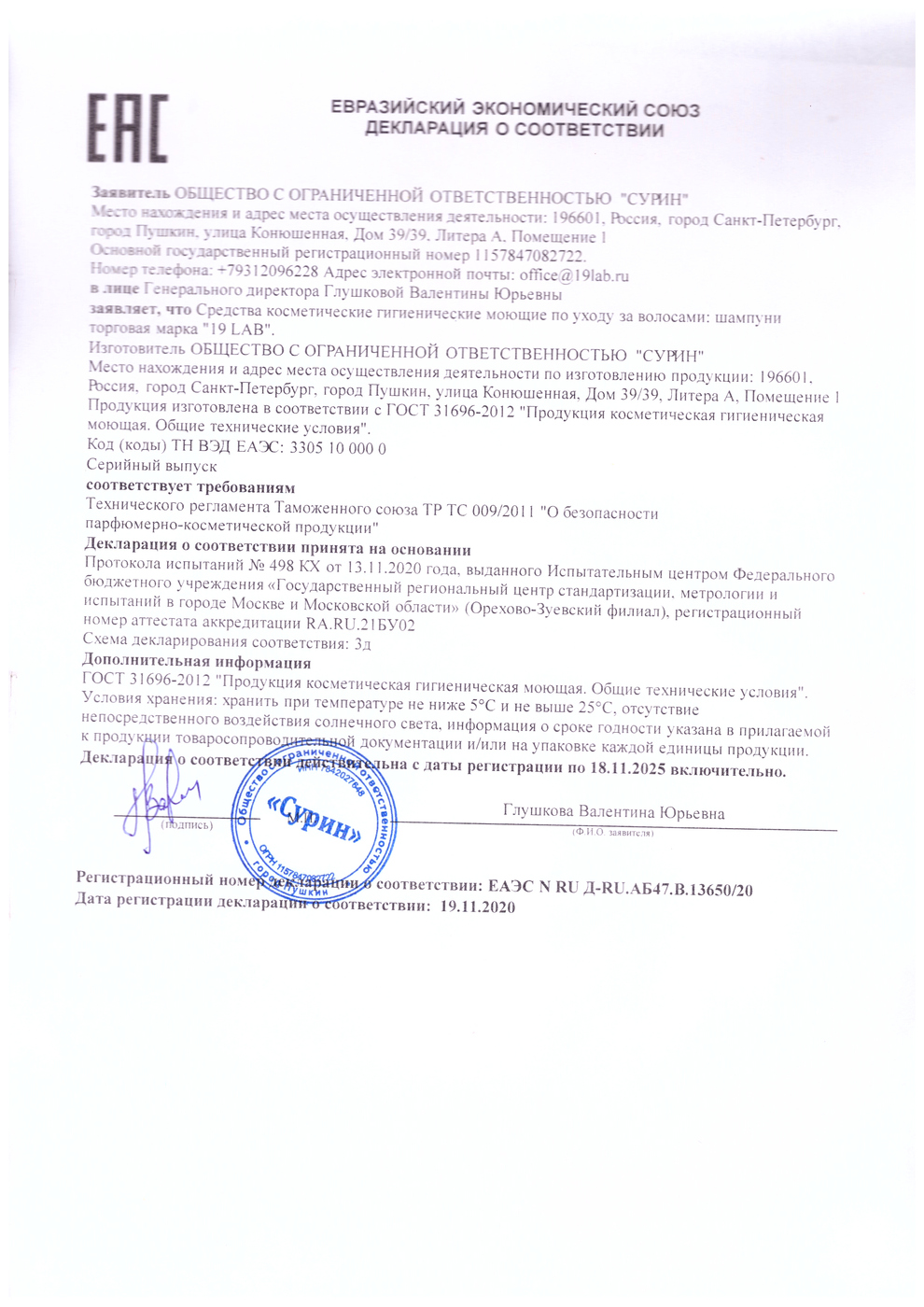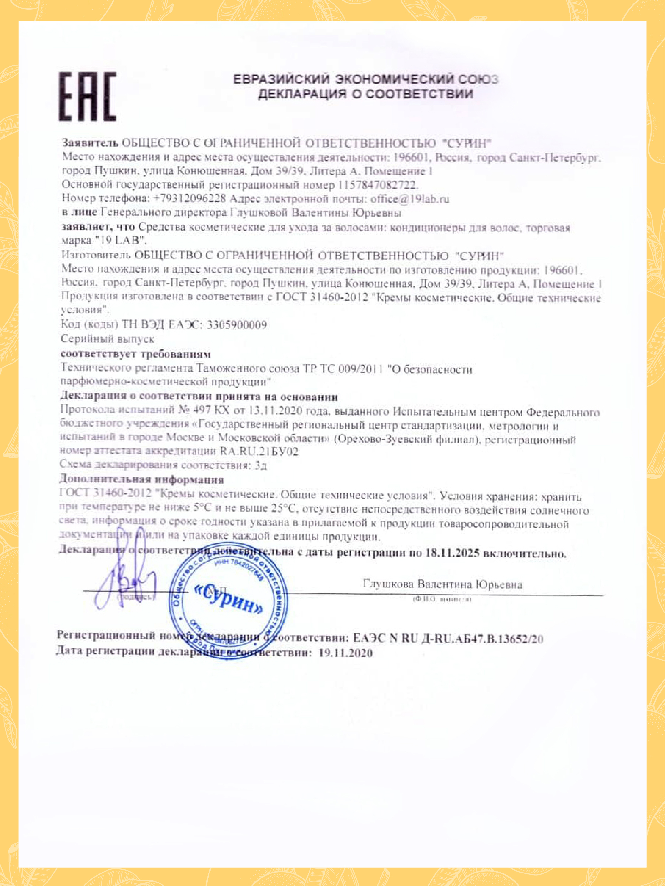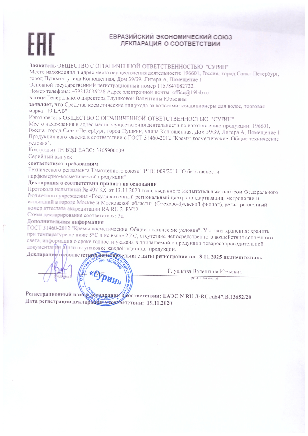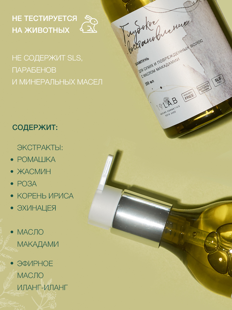 19Lab Бальзам для волос нормальных и ломких, бессульфатный профессиональный кондиционер, 250 мл