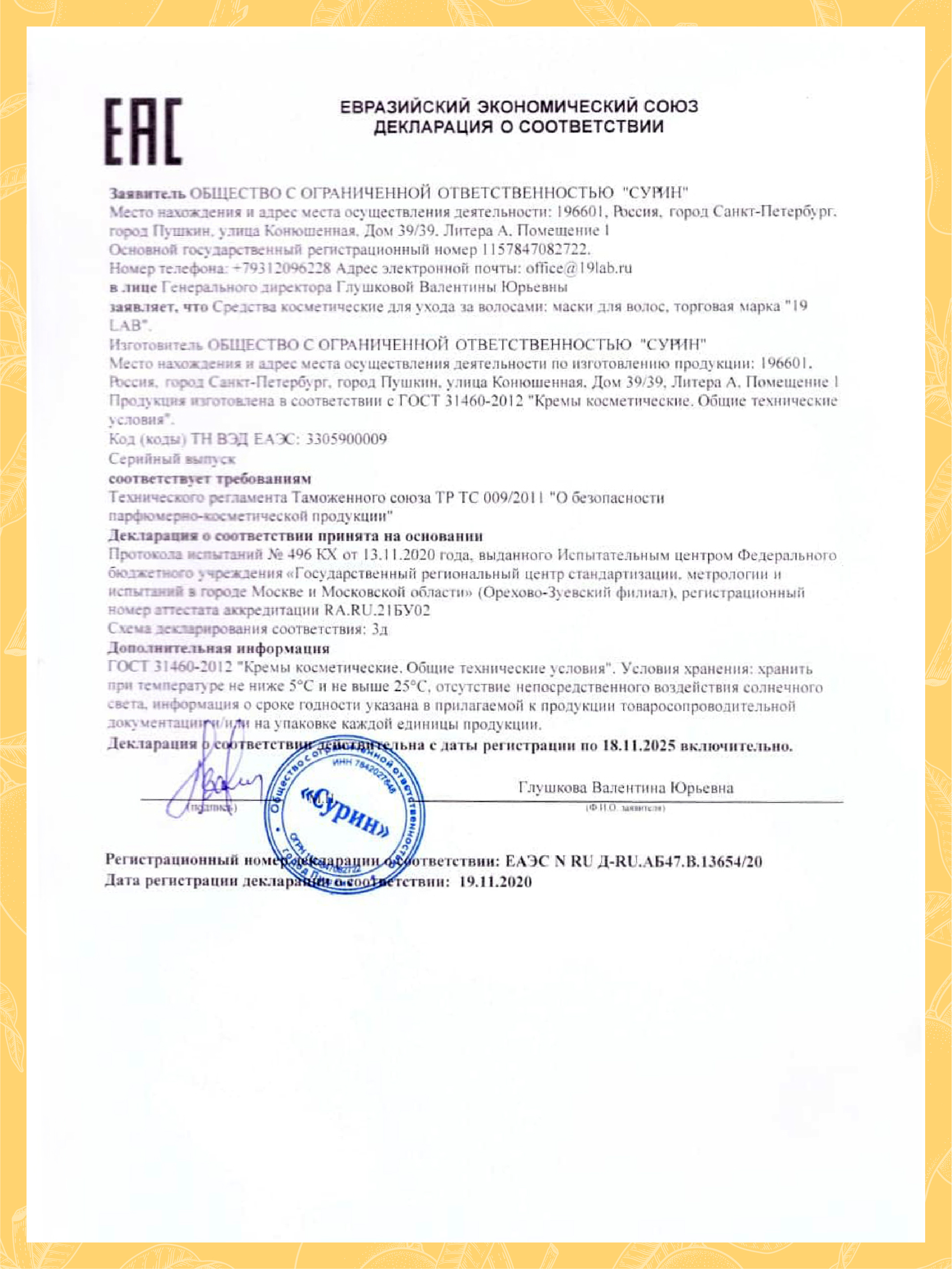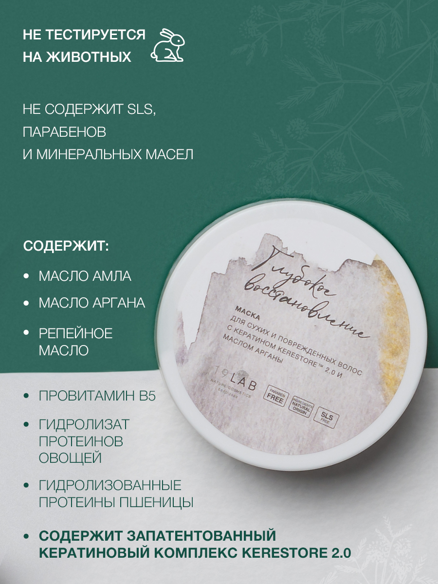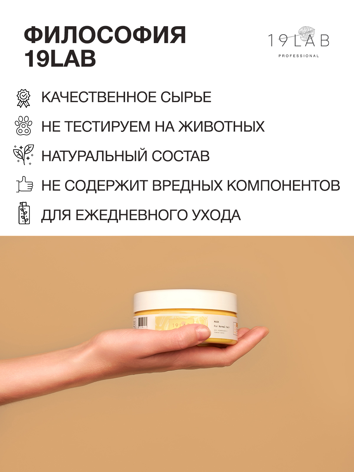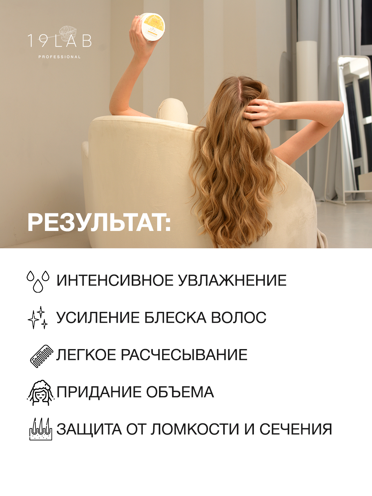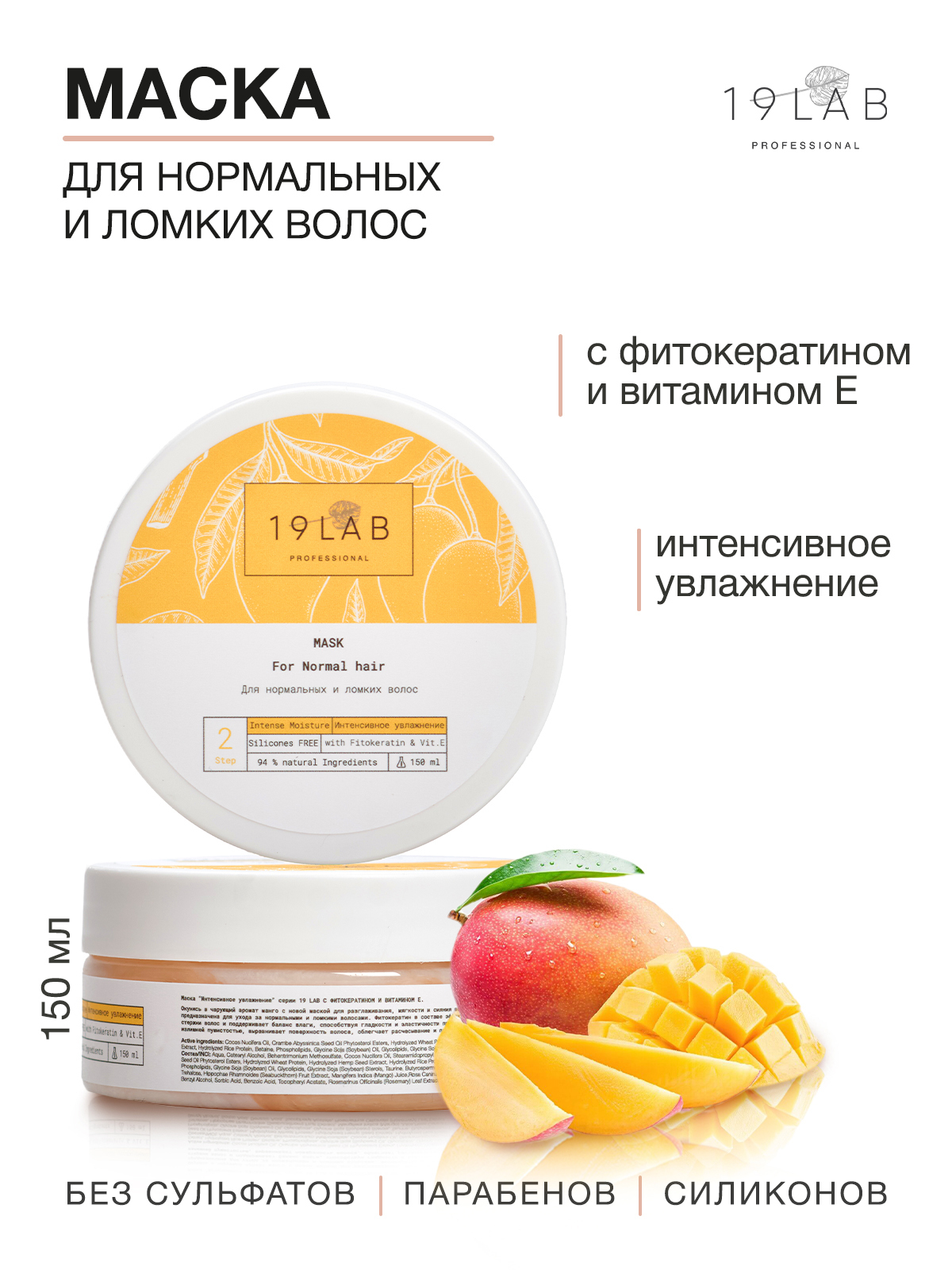 19Lab Маска для волос нормальных и ломких, профессиональная, с фитокератином и витамином Е, 150 мл