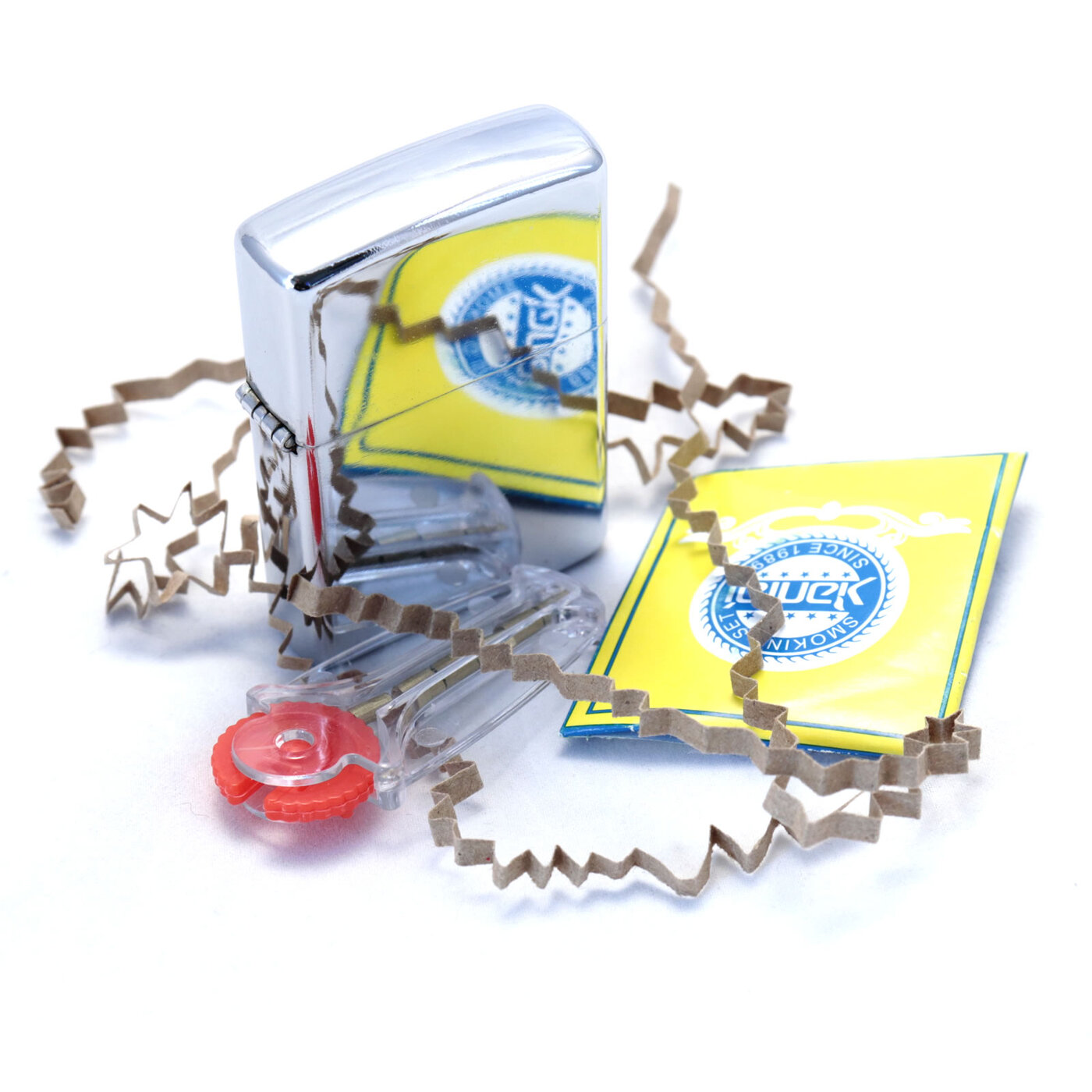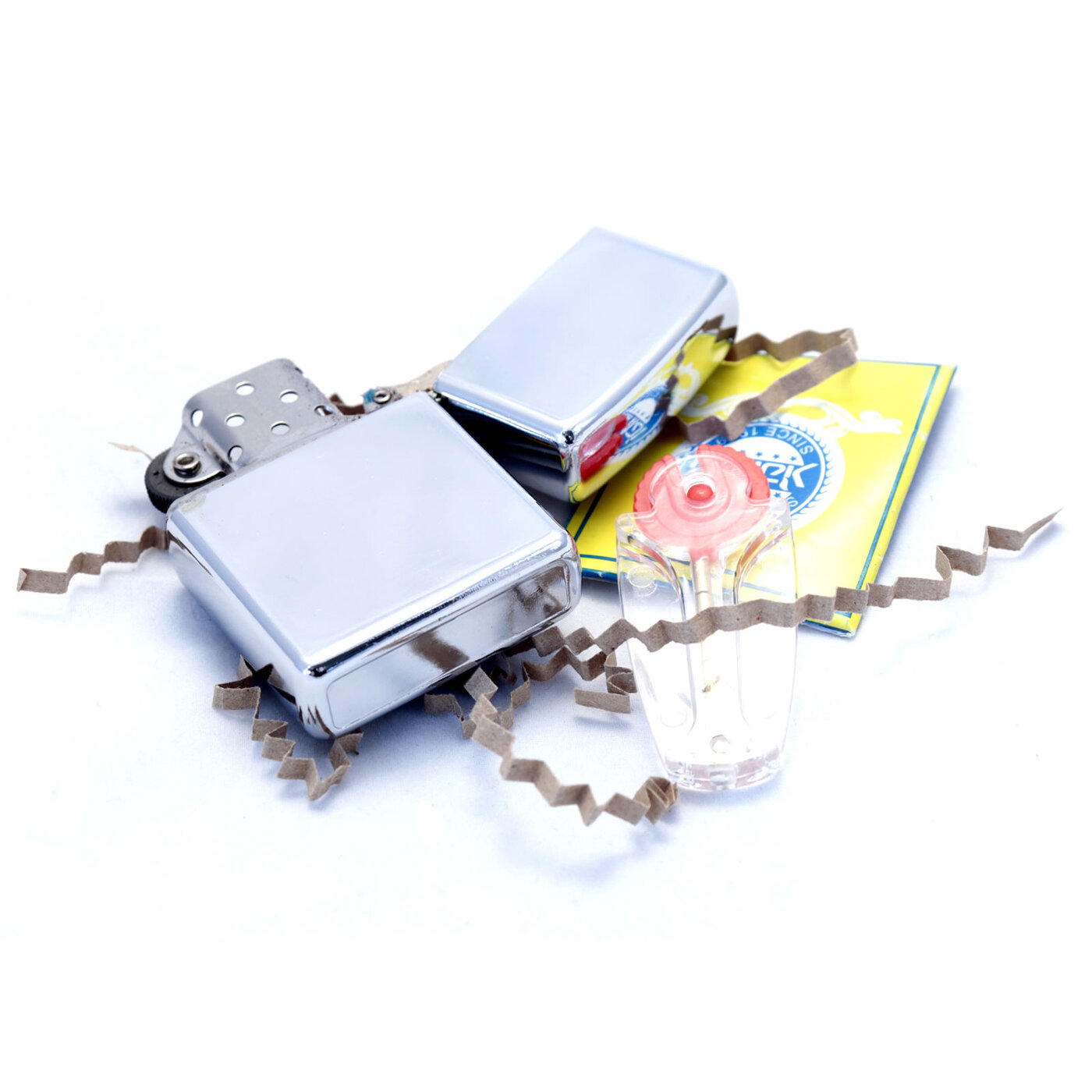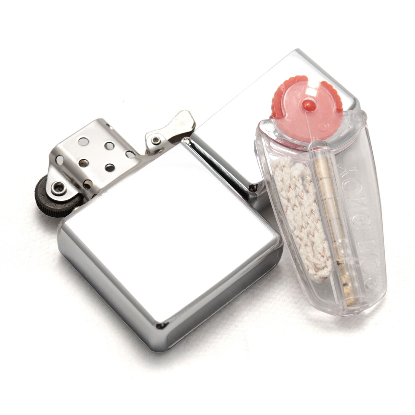 Комплект: бензиновая зажигалка, запасной фитиль, 7 кремней