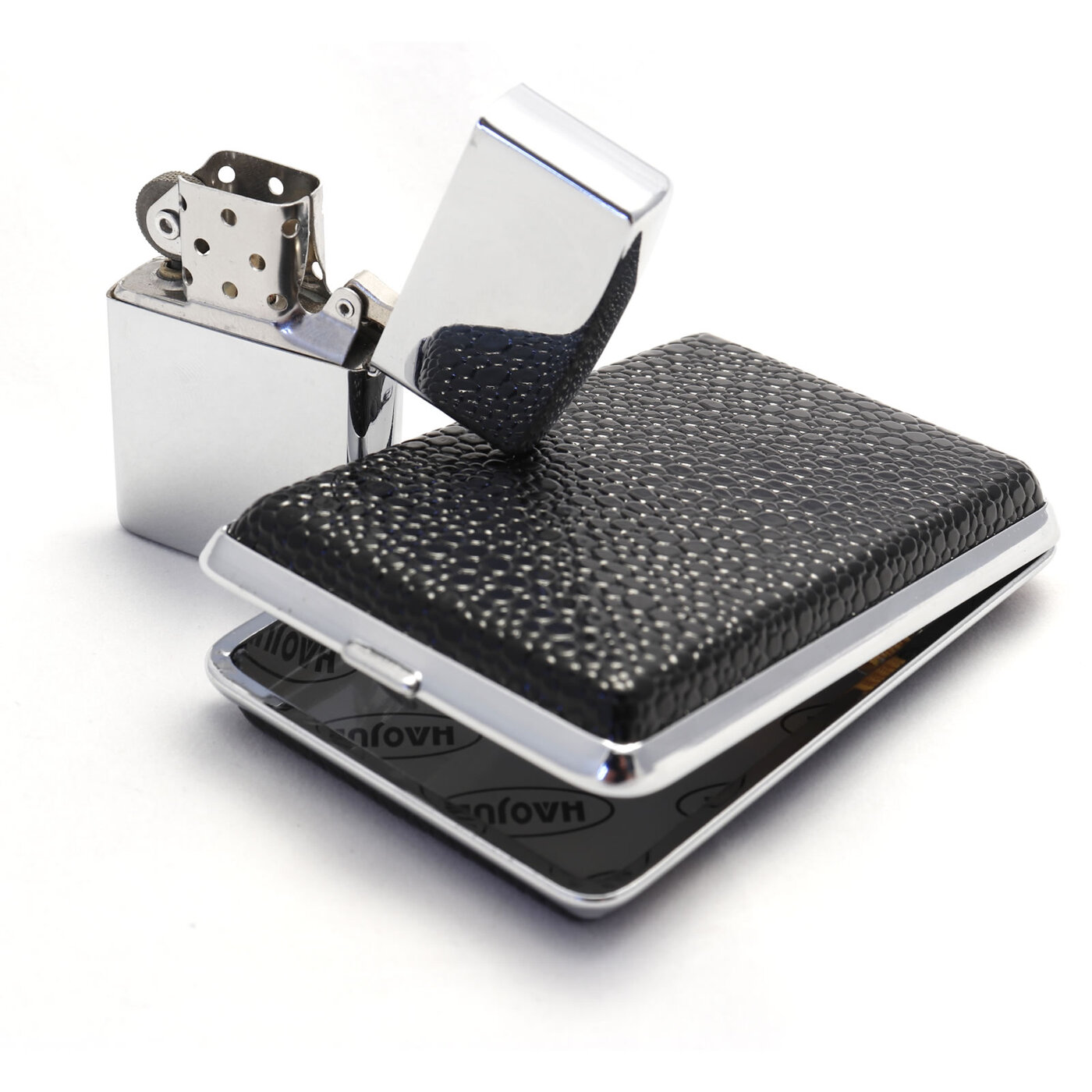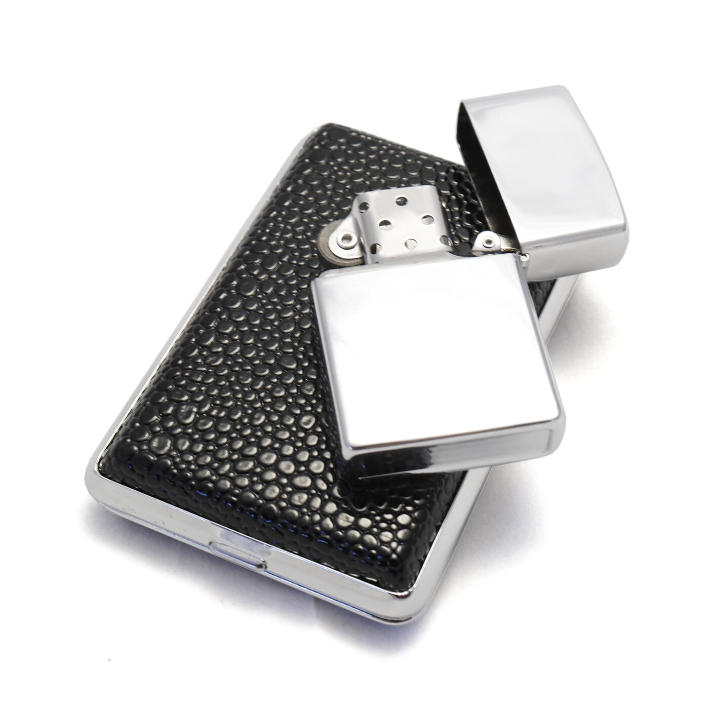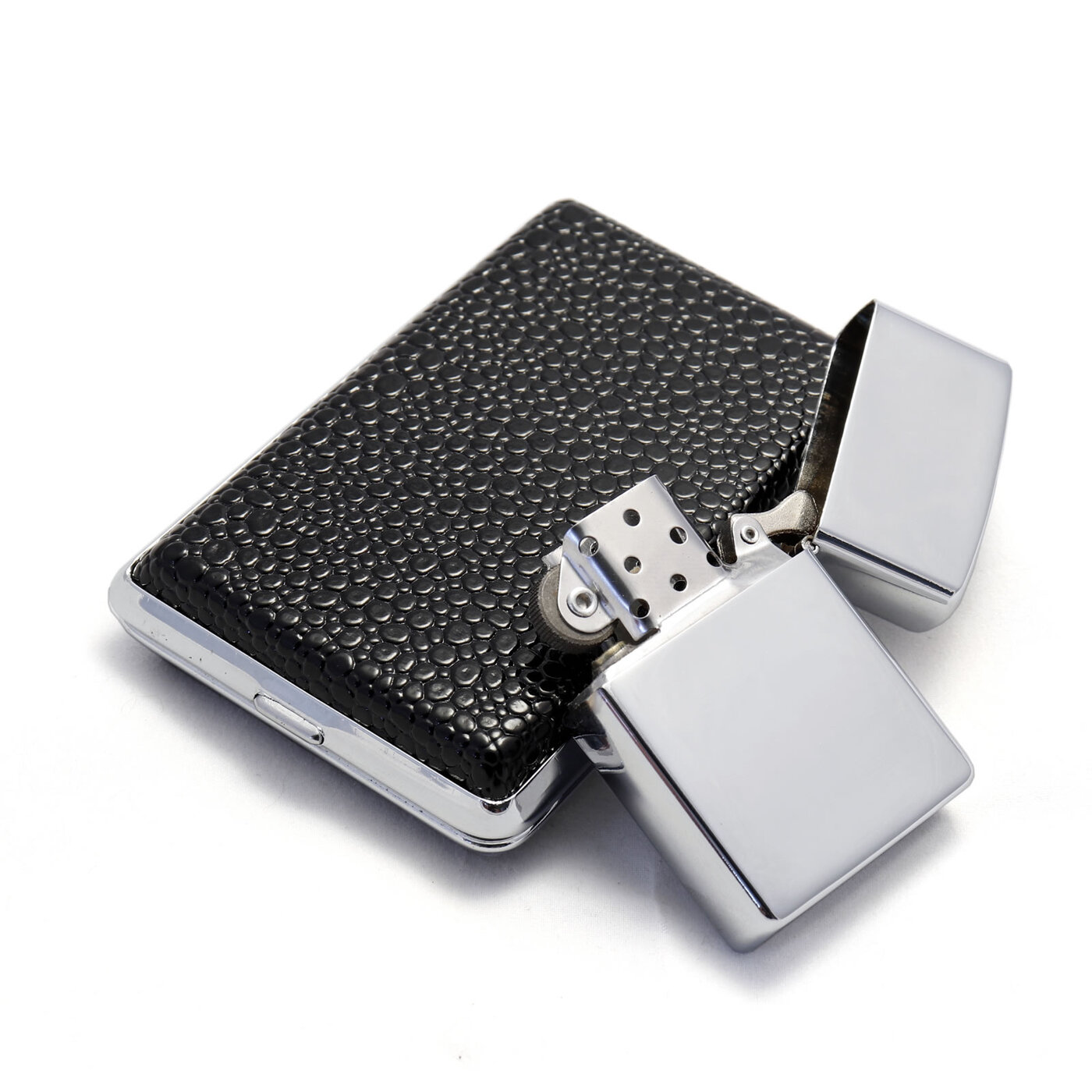 Комплект: портсигар (10 сигарет х 85мм) + бензиновая зажигалка