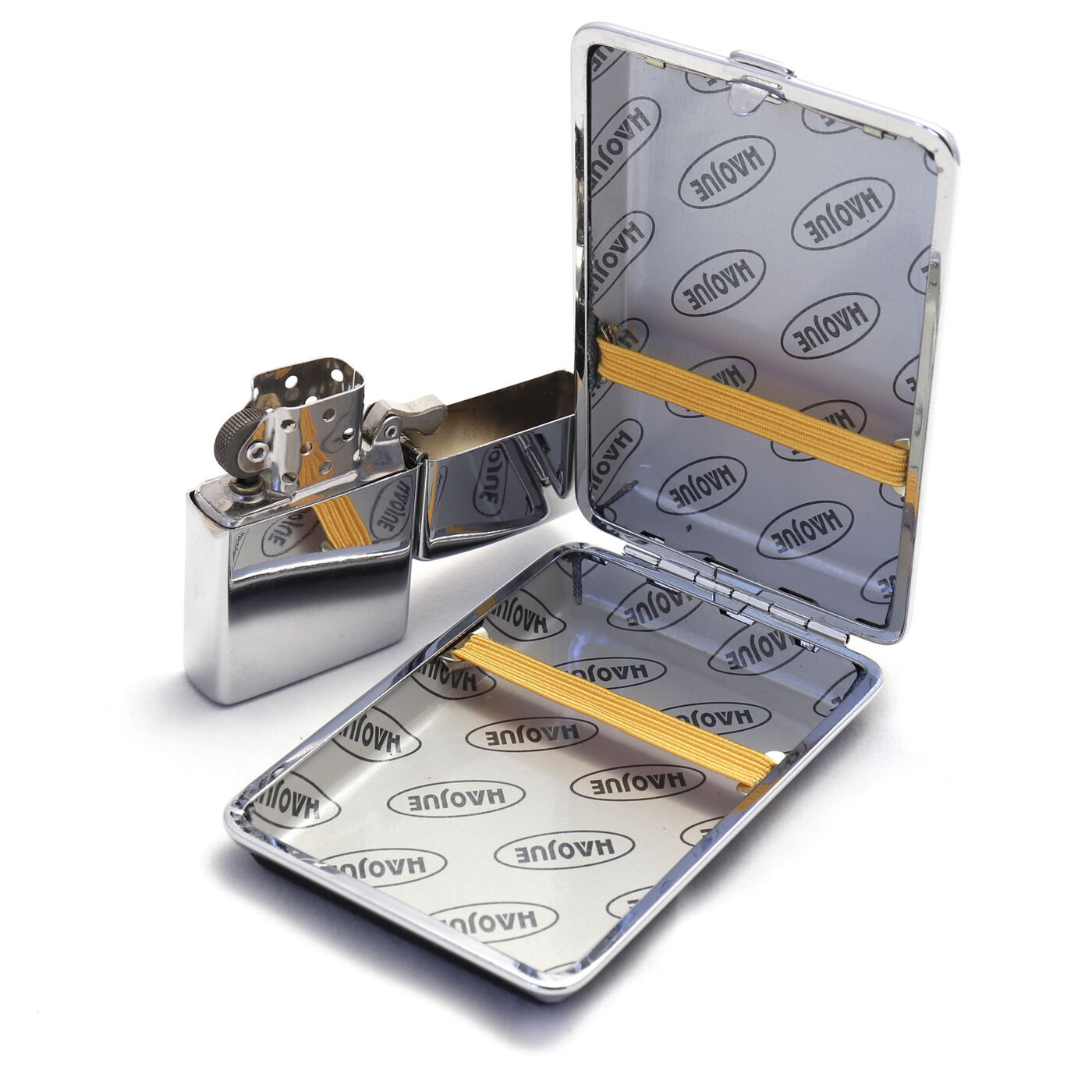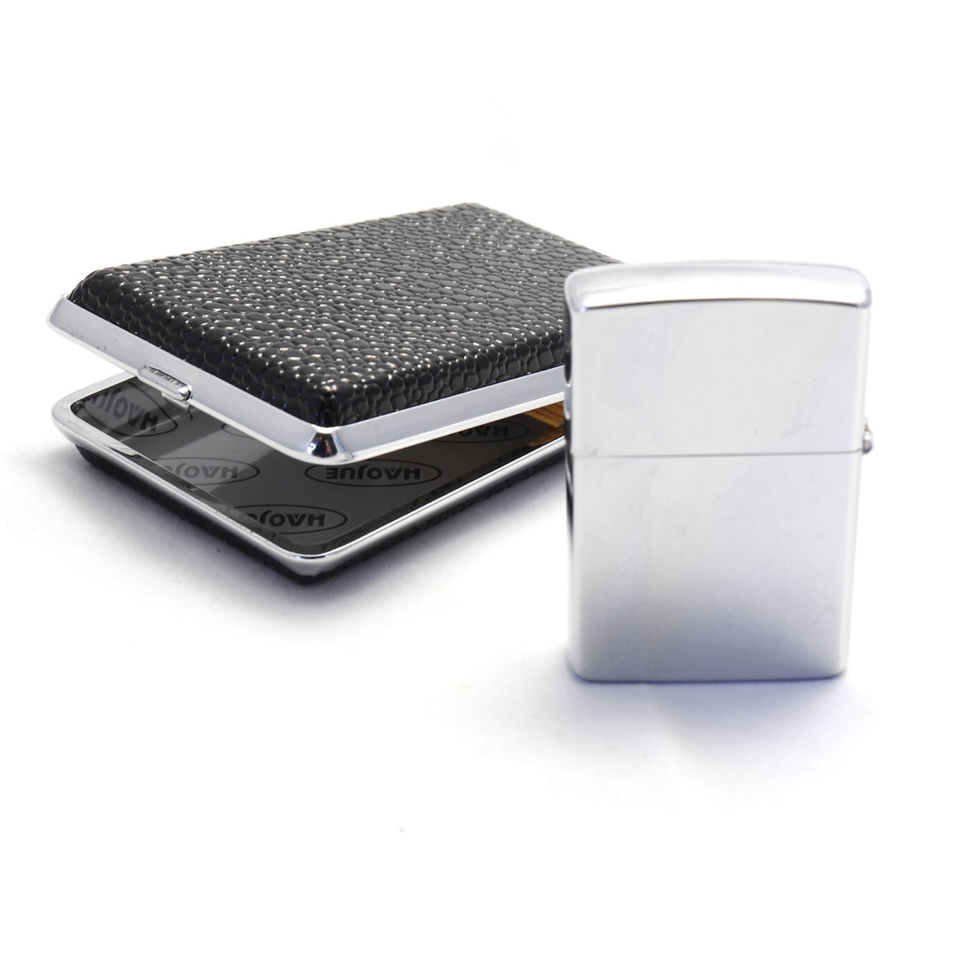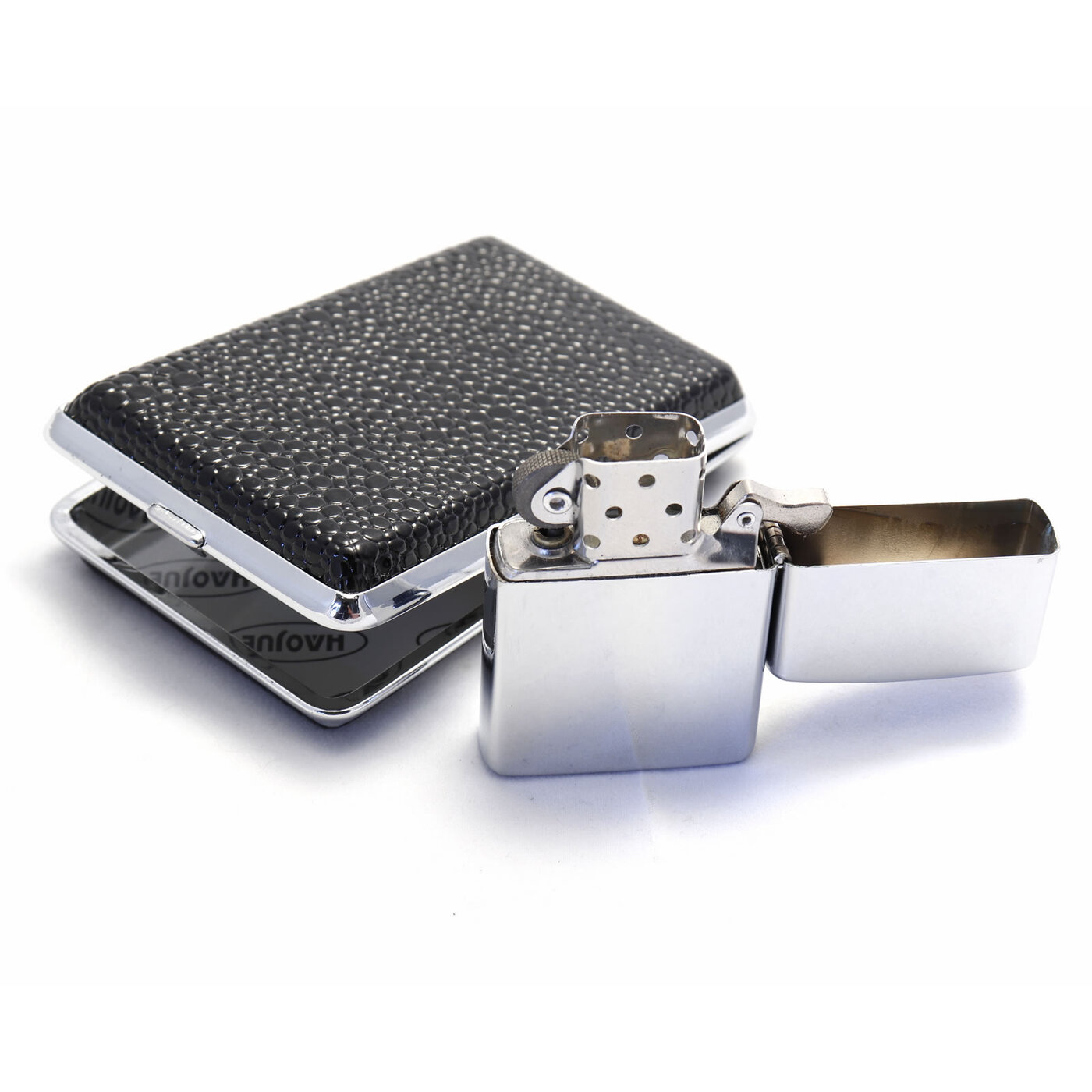 Комплект: портсигар (10 сигарет х 85мм) + бензиновая зажигалка