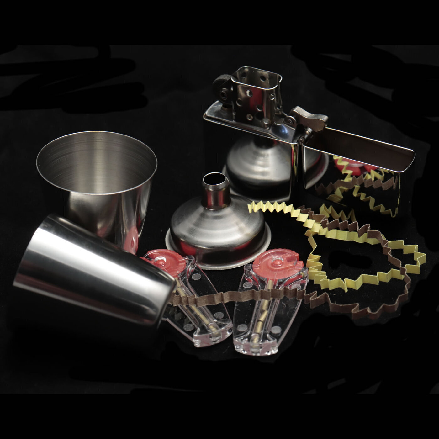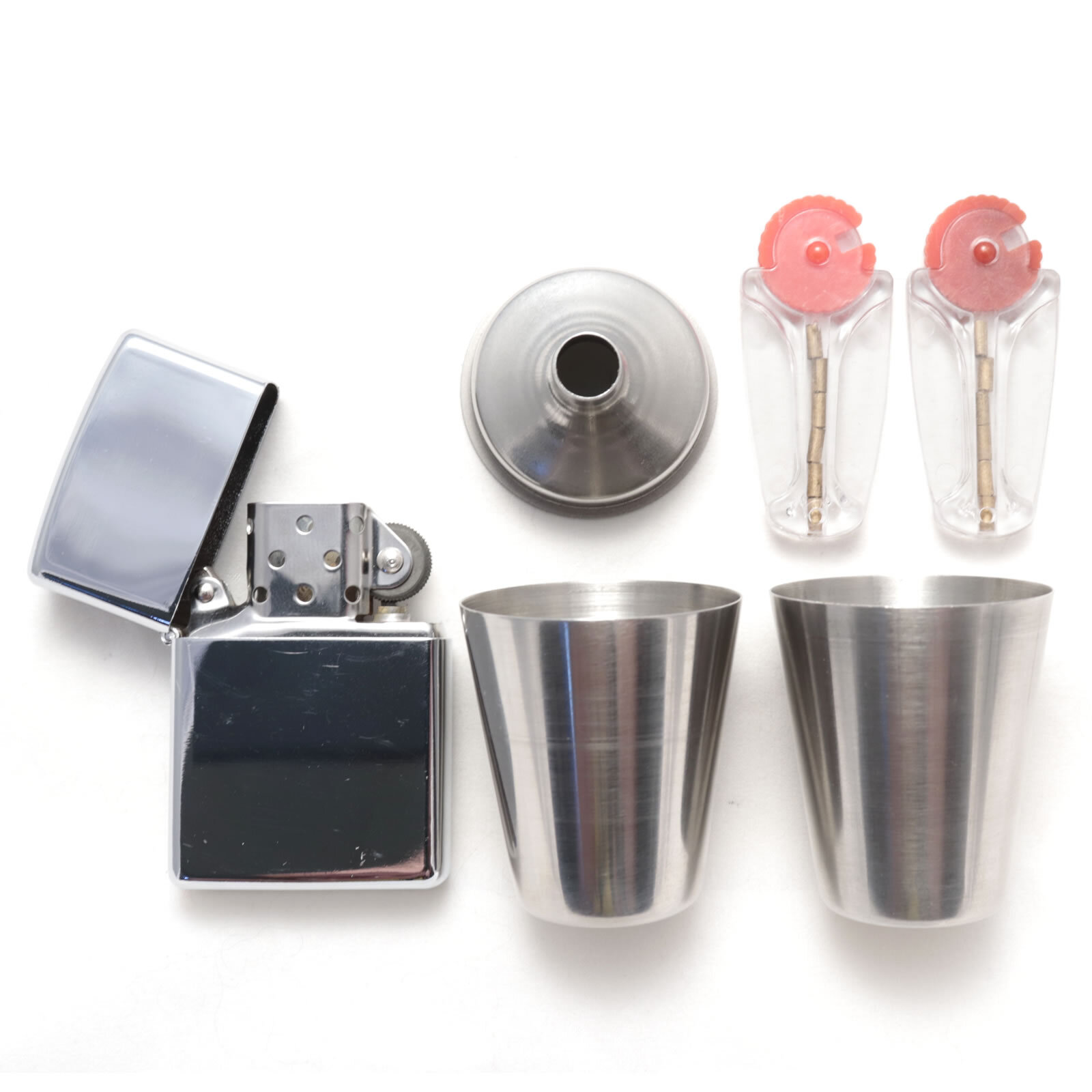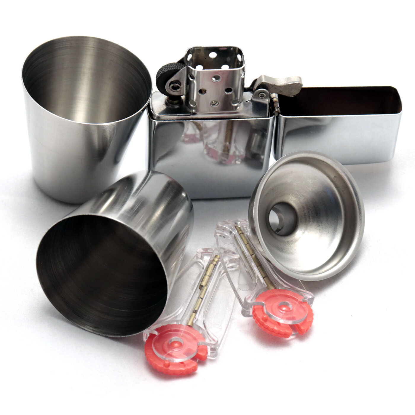 Комплект №3: 12 кремней + бензиновая зажигалка + воронка + 2 стаканчика