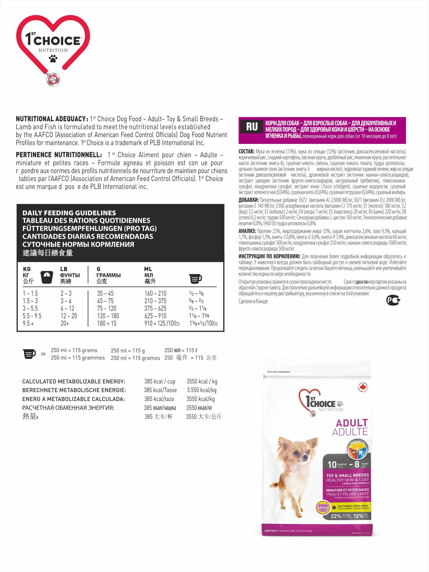 Корм для собак 1st Choice Chicken Formula TOY and SMALL BREEDS for PUPPIES