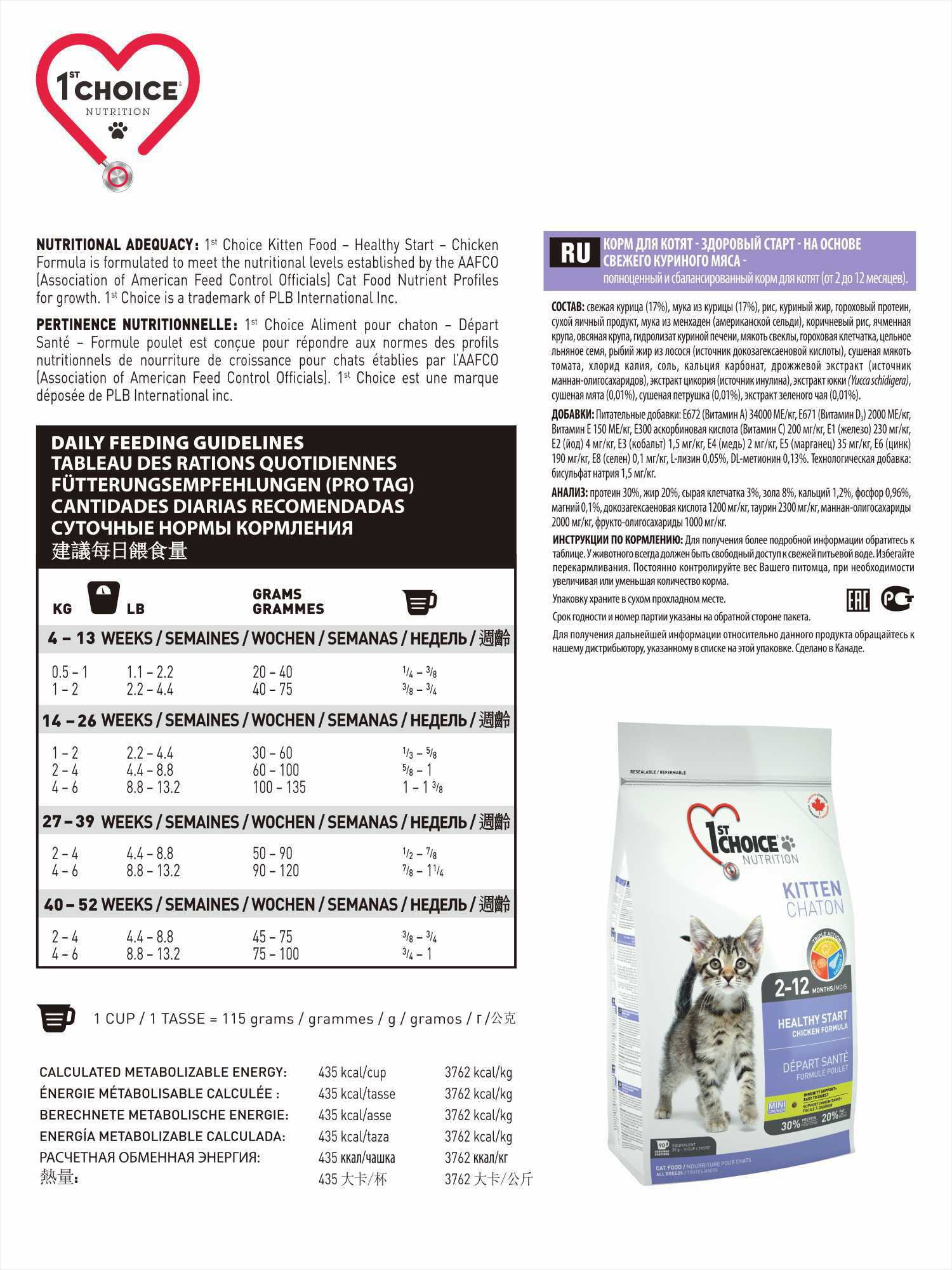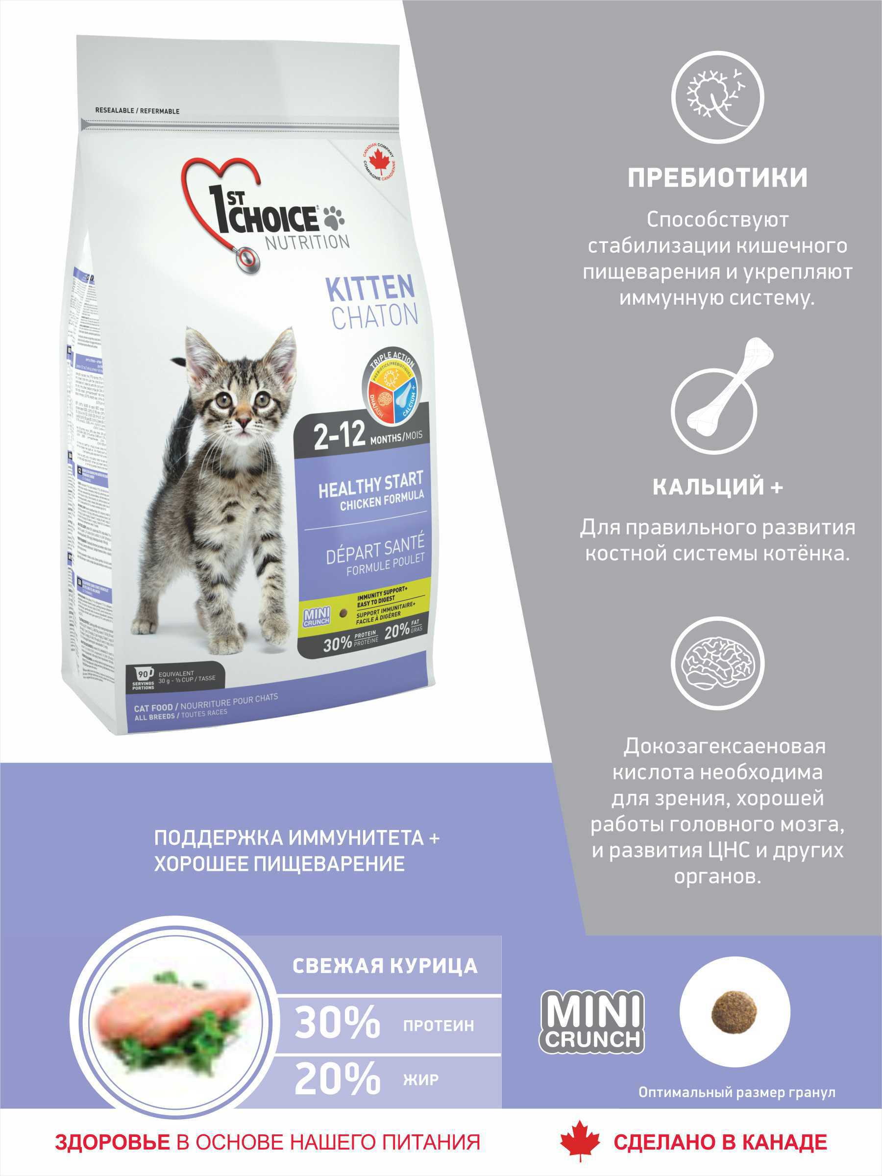 Сухой корм для котят 1st Choice HEALTHY START for KITTENS (с курицей), 5,44 кг