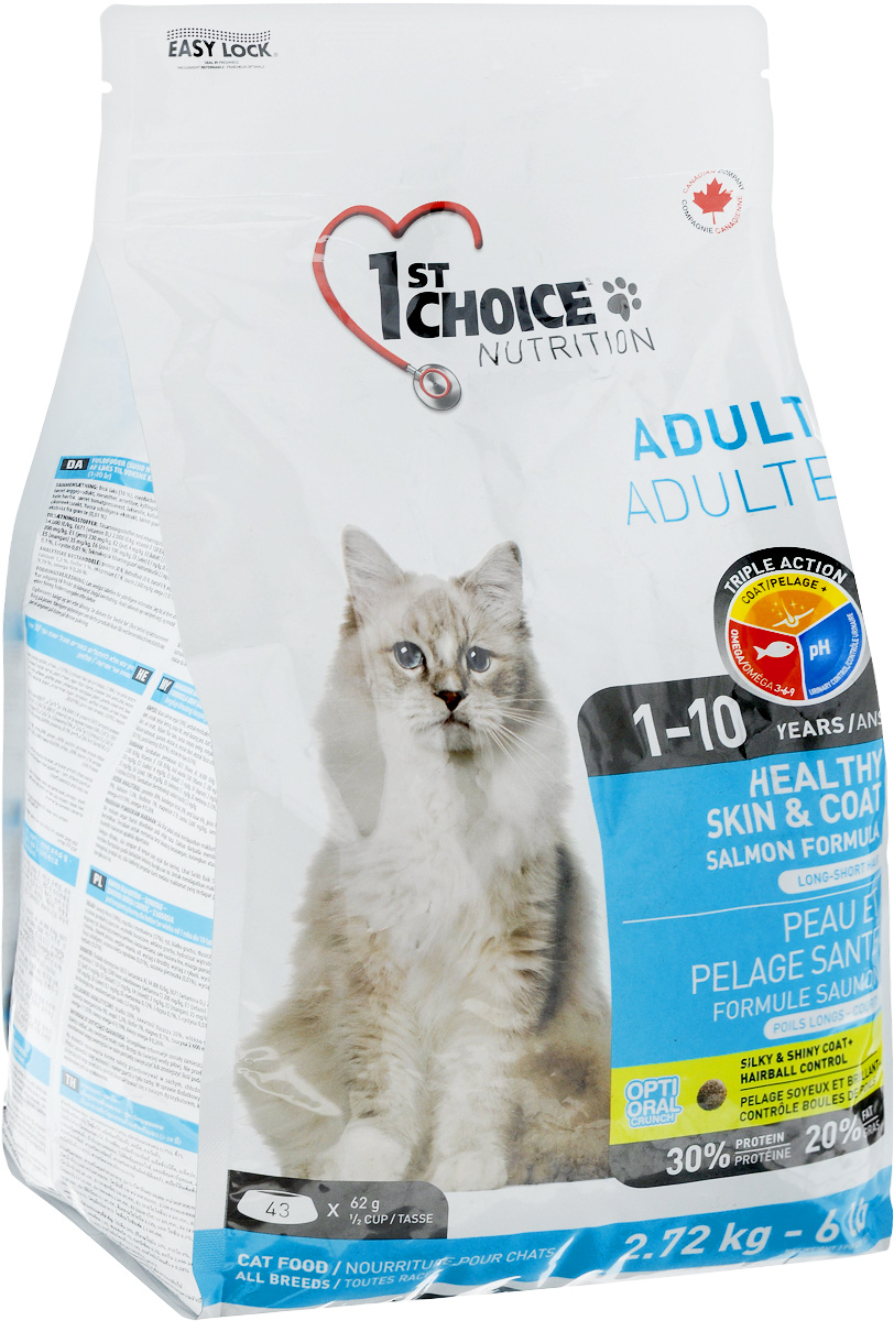 Корм для кошек 1st Choice Adult для профилактики МКБ, для здоровья кожи и шерсти, с лососем
