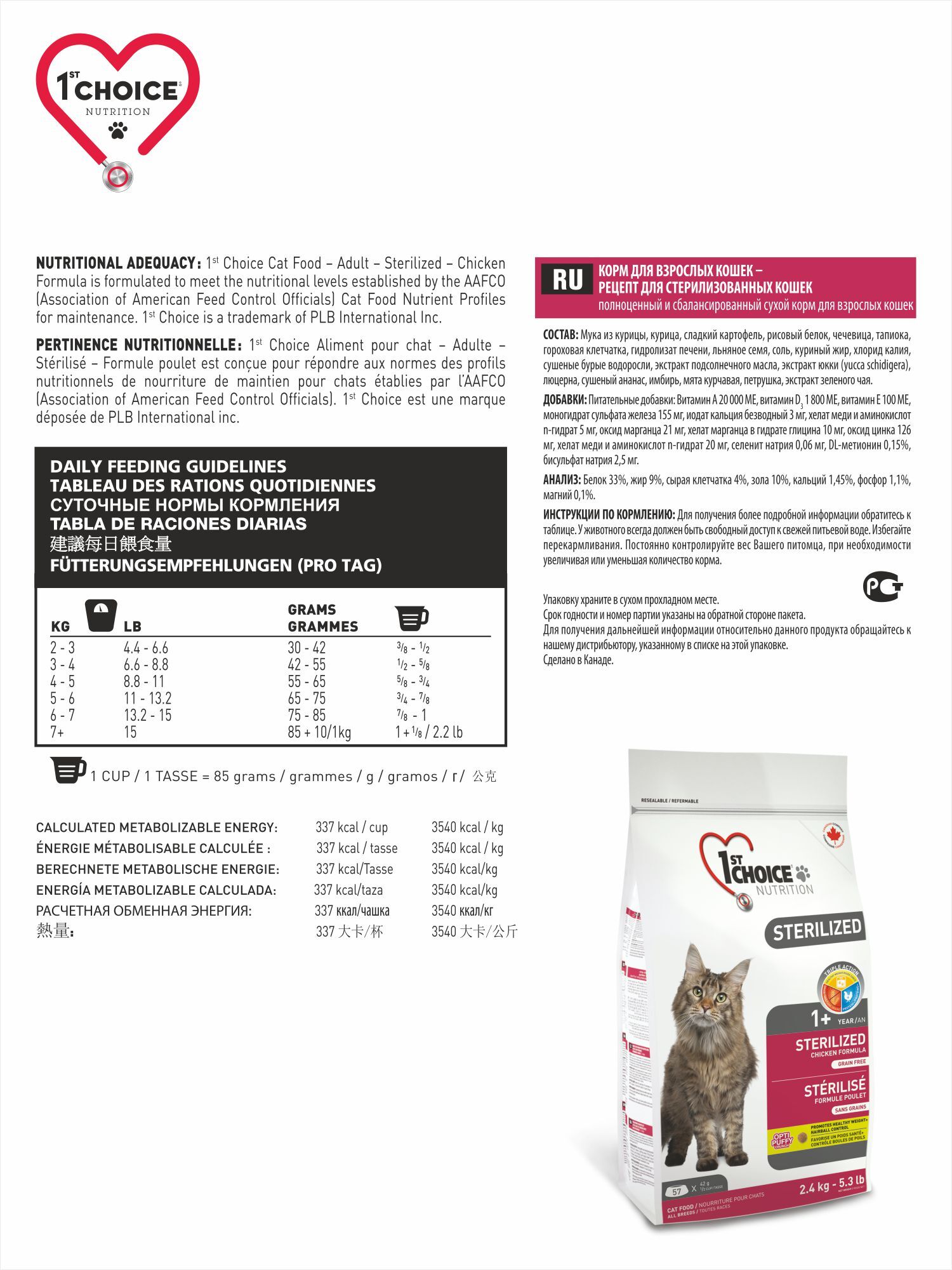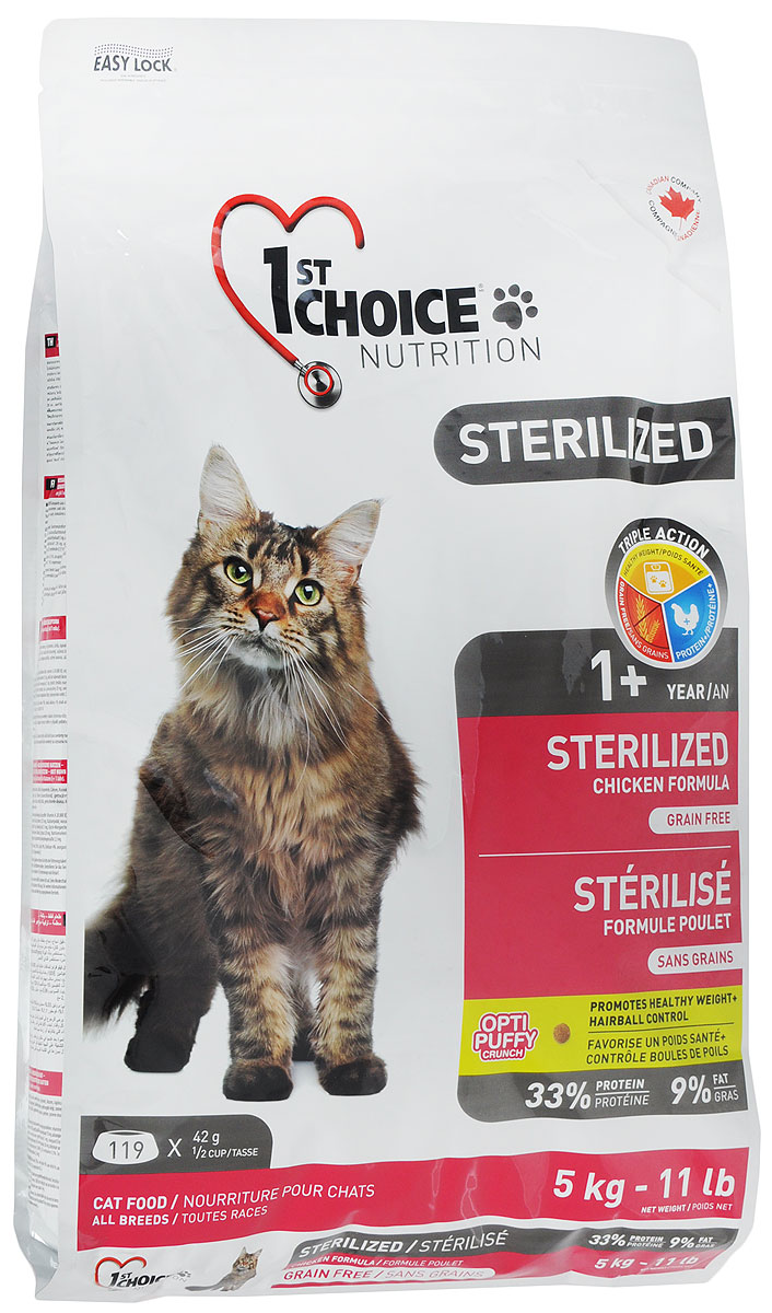 Корм для стерилизованных кошек 1st Choice Adult для профилактики МКБ, беззерновой, с курицей