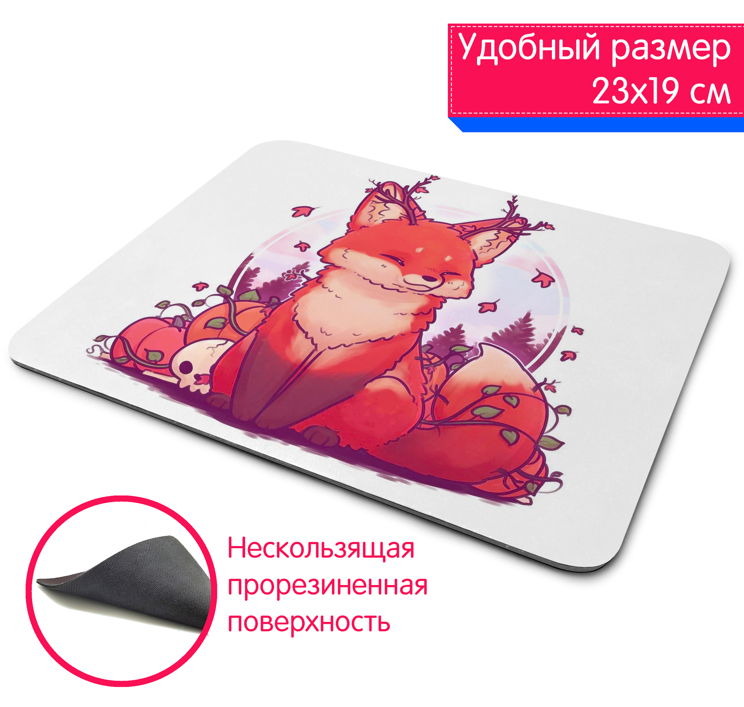 Коврик для мыши, Игровой коврик для мыши 1st color Лиса в лесу арт, разноцветный