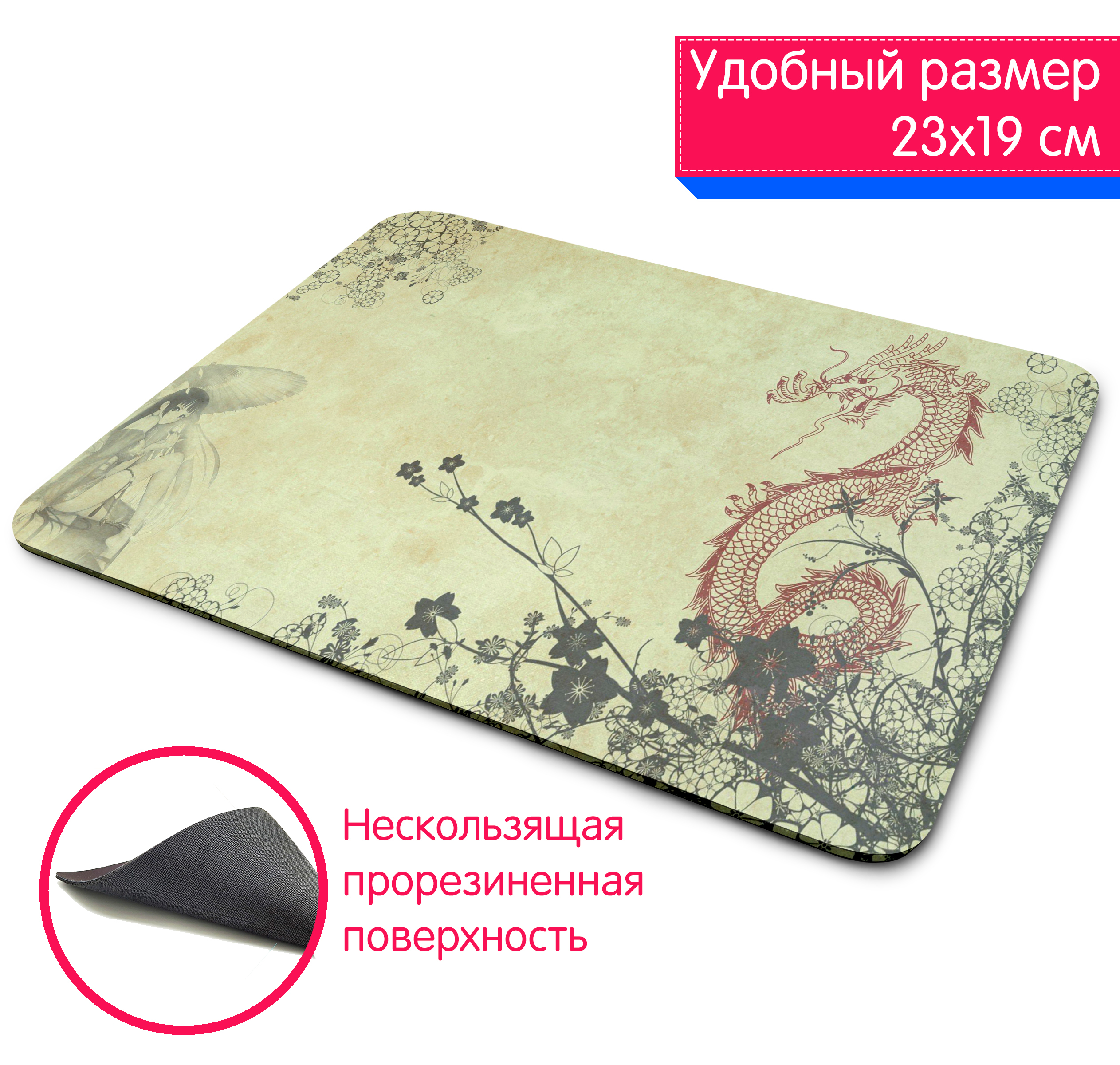 Коврик для мыши, Игровой коврик для мыши 1st color Дракон японский, разноцветный
