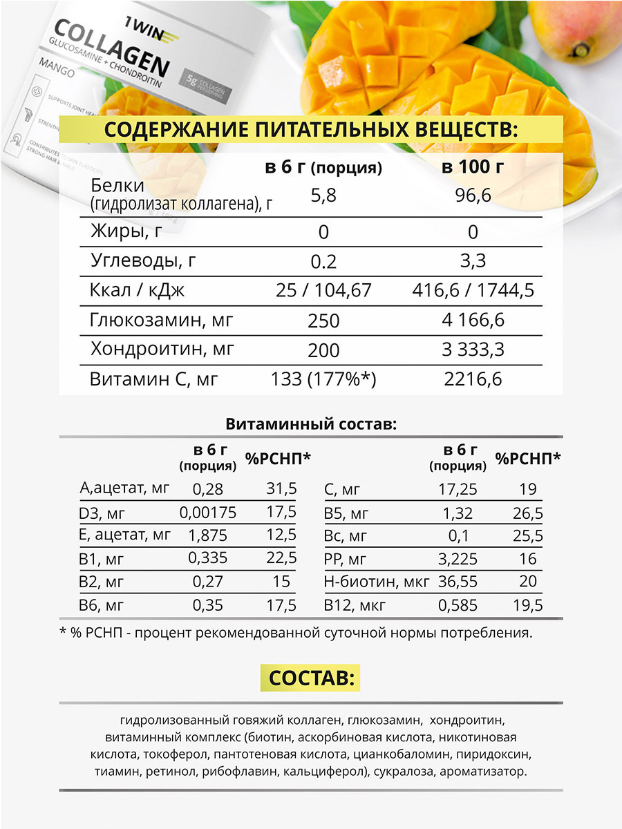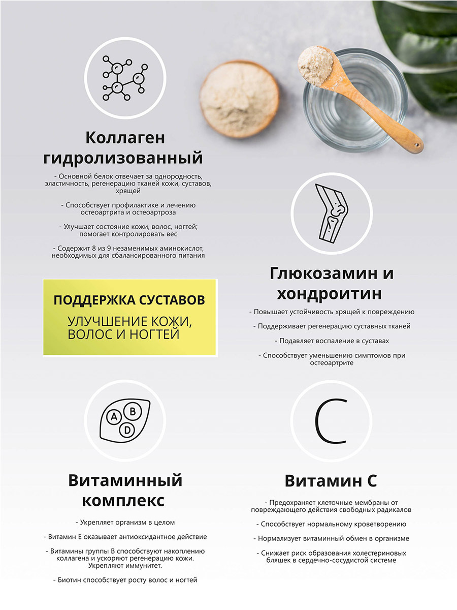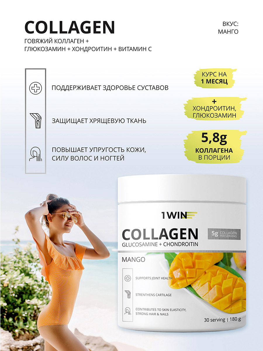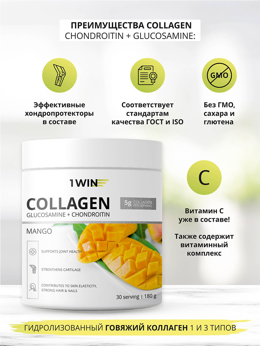 Коллаген, Collagen, + Chondroitin + Glucozamine / Хондроитин + Глюкозамин , Нейтральный вкус, 180гр.