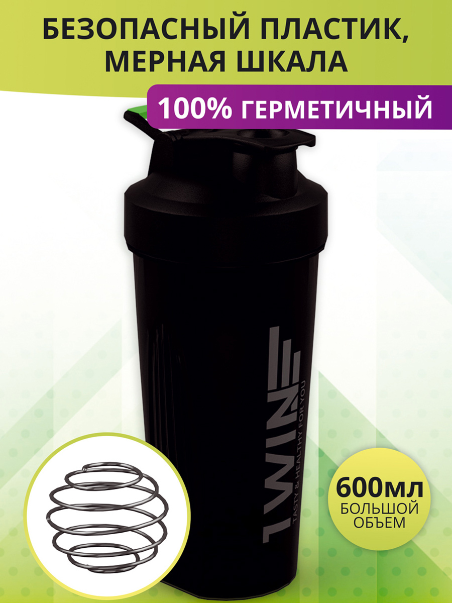 Шейкер спортивный, ШейкерЧерный 1WIN, 0,6л., черный