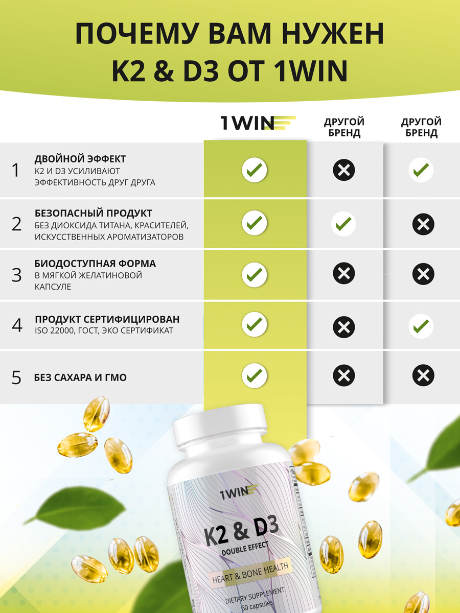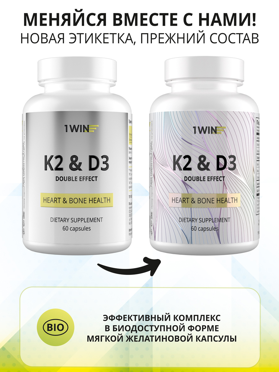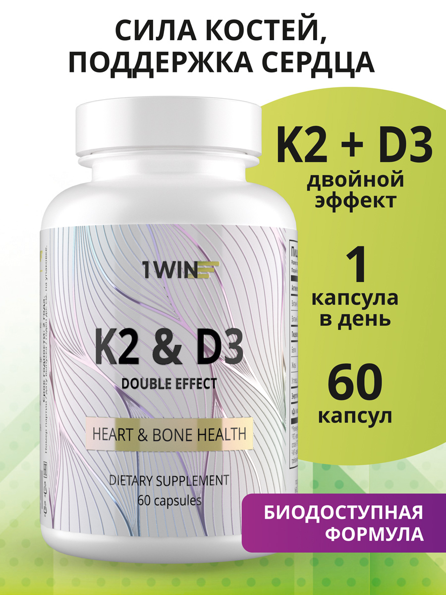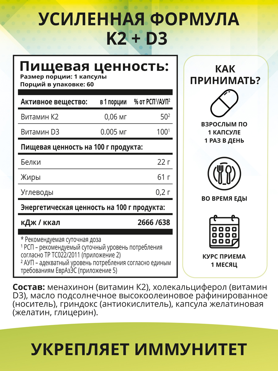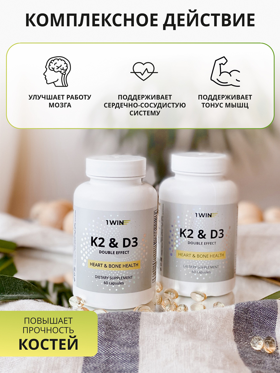 Витамин D3 + К2 / К2&Д3 Дабл эффект, (укрепляет кости, улучшает работу сердца) курс на 2 месяца.