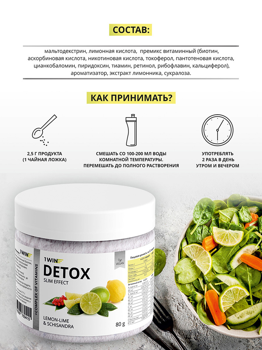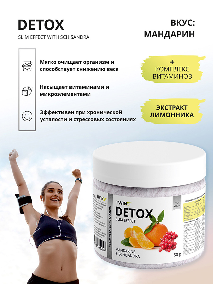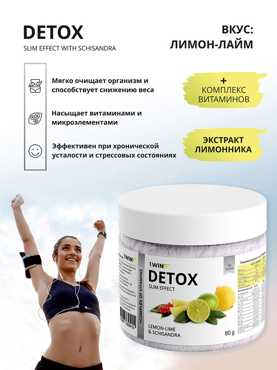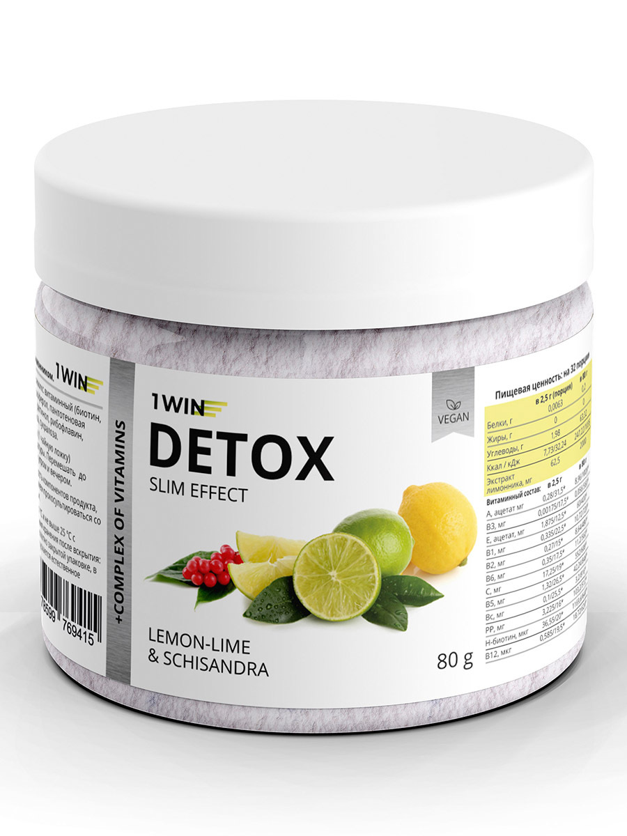 1WIN Detox Slim Effect / Напиток дренажный Детокс Слим Эффект с Ягодами Годжи. Вкус Груша, 32 порции