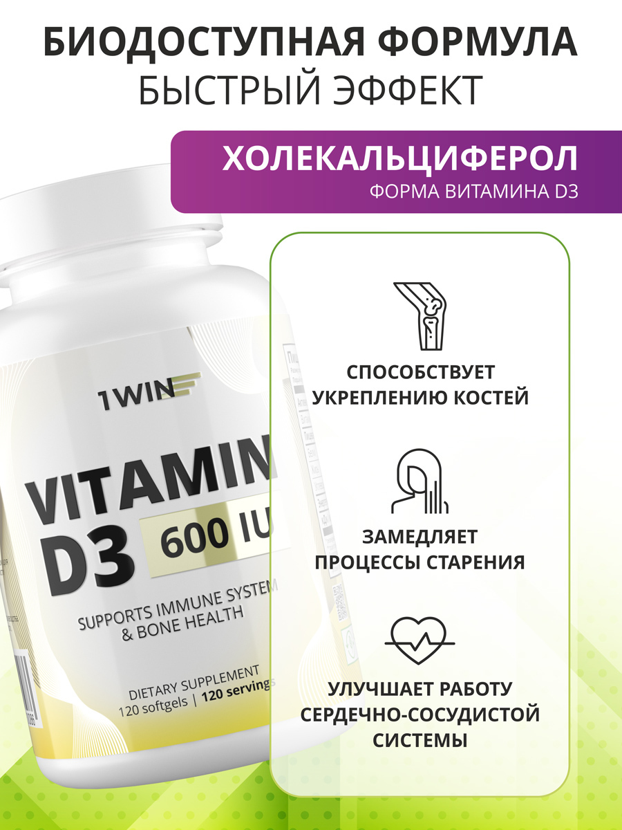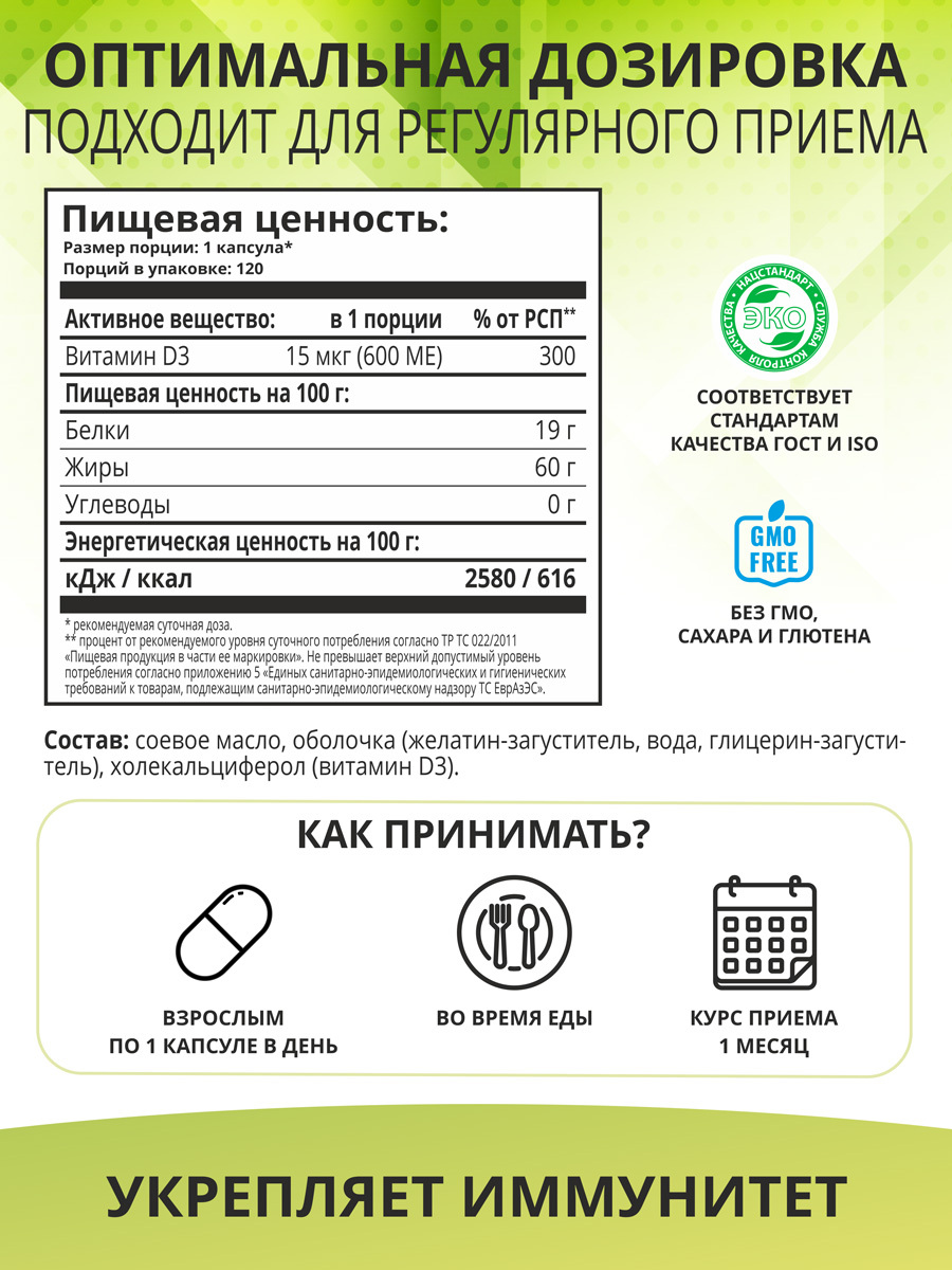 Витамин Д - д3 600 ME, для иммунитета, метаболизма и иммуномодулятор d витамин d3, 120 капсул