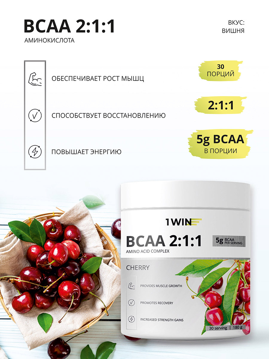ВСАА 2:1:1. Вкус Вишня, курс на 1 месяц