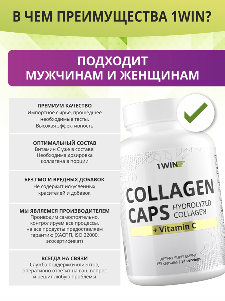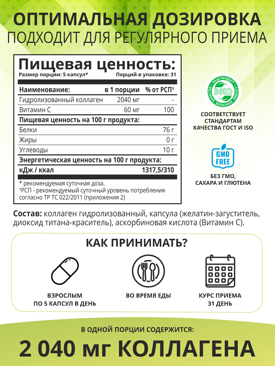 Коллаген с витамином С в капсулах, collagen для суставов, 155 капсул