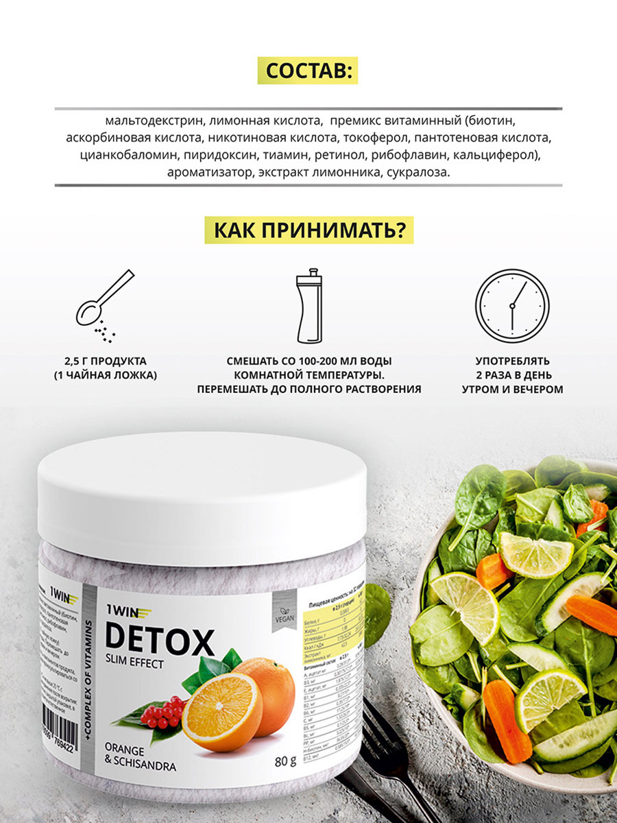 Detox Slim Effect / Напиток дренажный Детокс Слим с экстрактом Лимонника, Вкус Апельсин, 32 порции