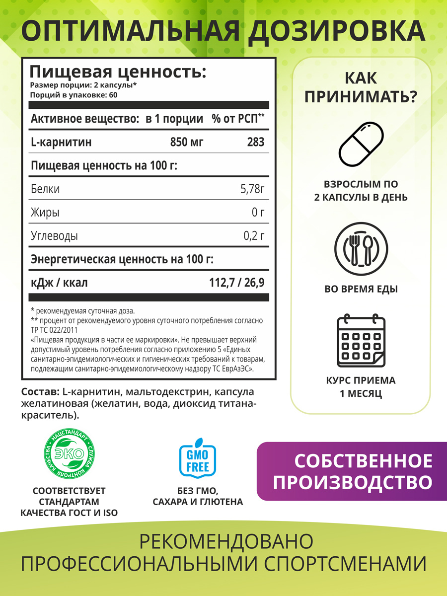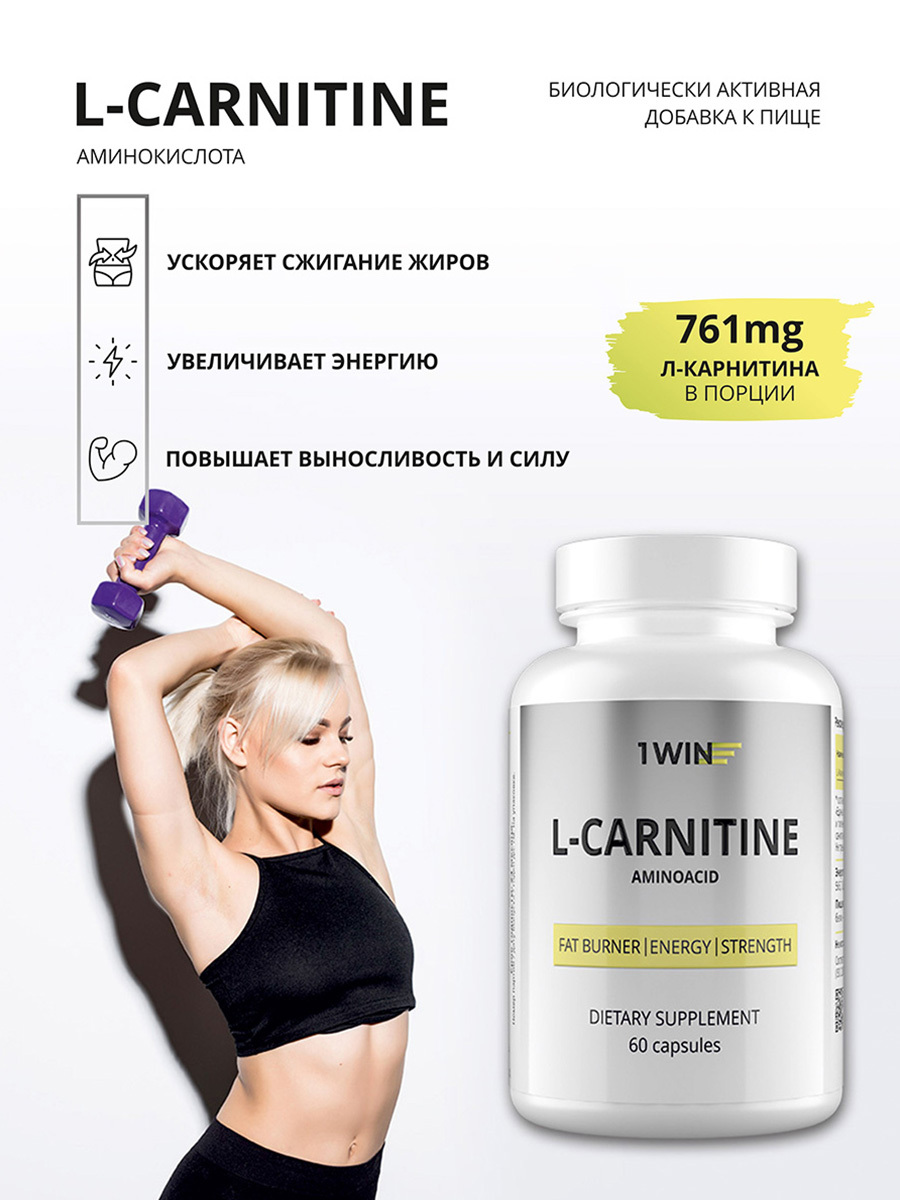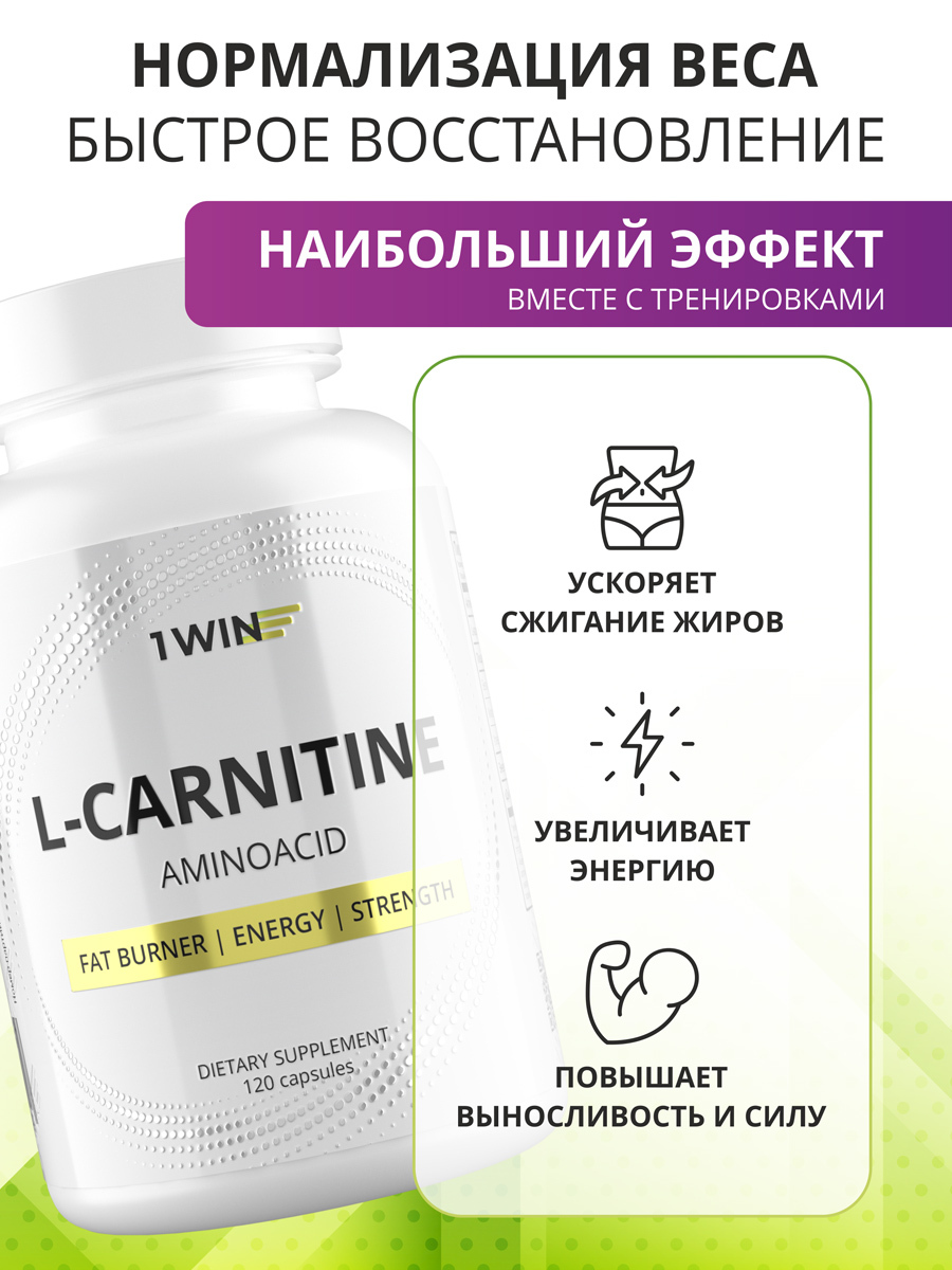 L-карнитин / L-carnitine / Похудение /Сушка/ Жиросжигатель, 120 капсул