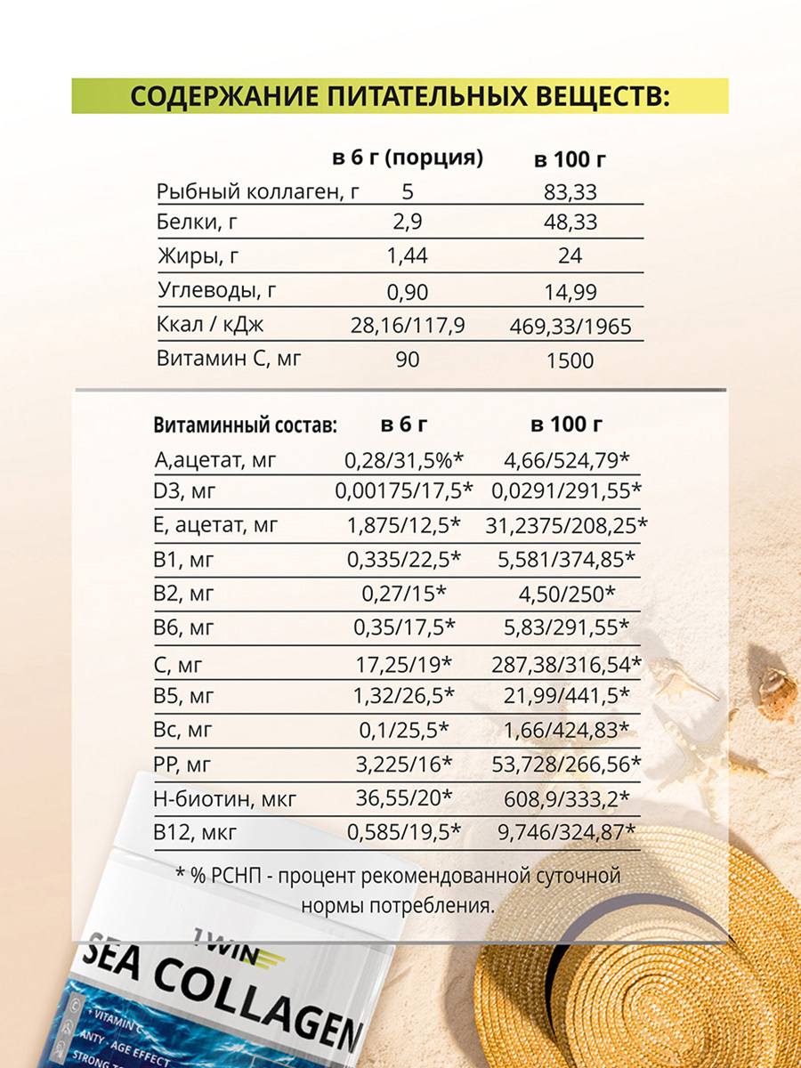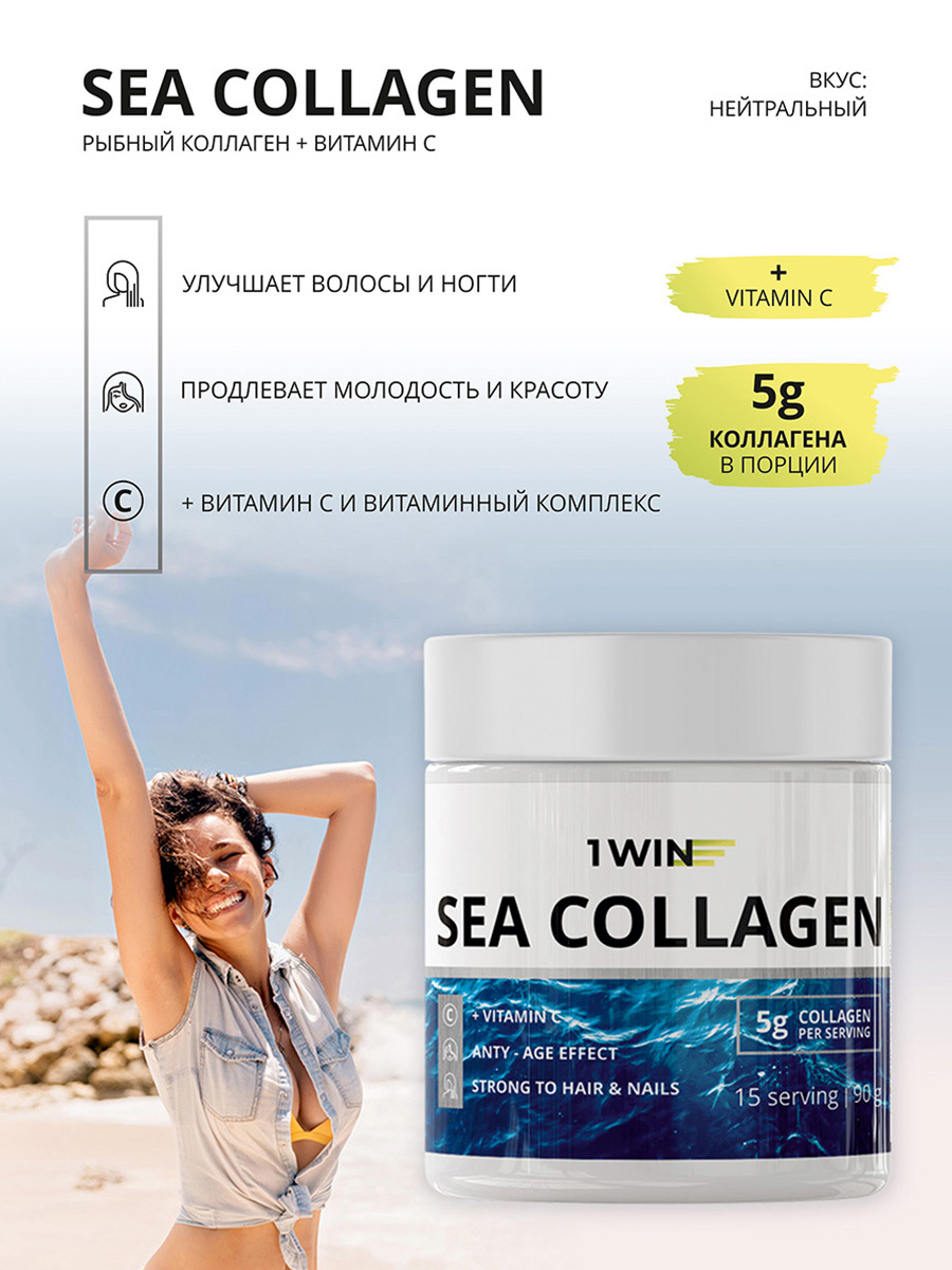 Collagen. Морской (рыбный) Коллаген + витамином С Без вкуса. 15 порций