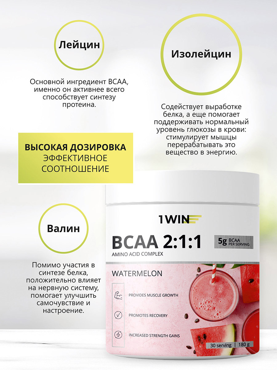 ВСАА 2:1:1 Комплекс аминокислот. Вкус Лимон-лайм, курс на 1 месяц