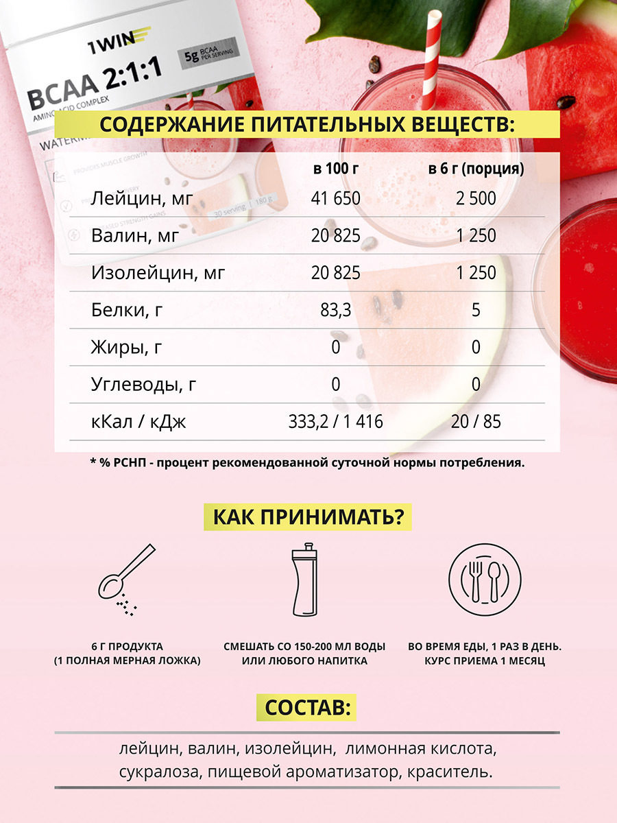 ВСАА 2:1:1 Комплекс аминокислот. Вкус Персик, курс на 1 месяц