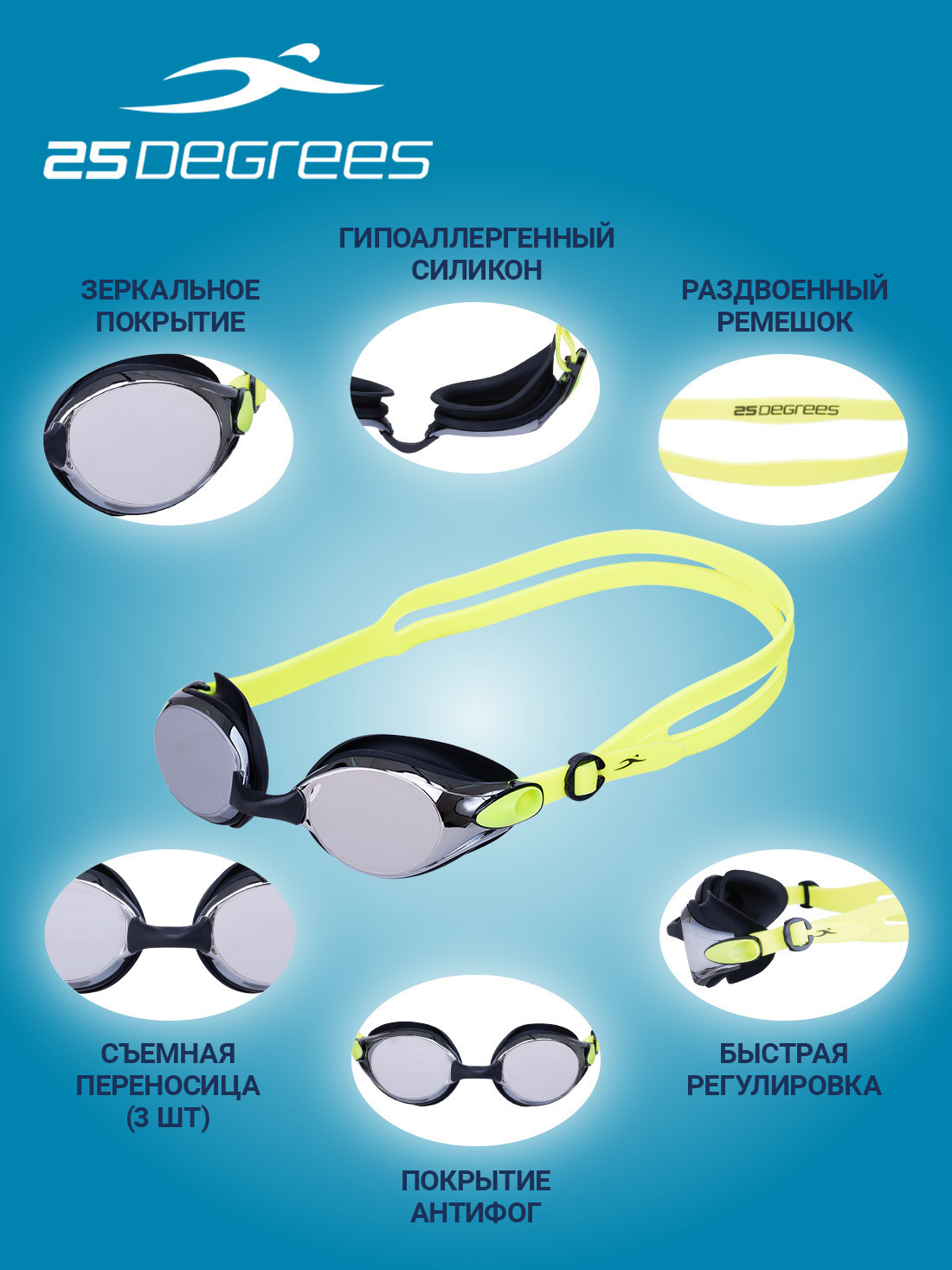 Очки для плавания 25Degrees Load Mirror Black/Lime, взрослые, плавательные очки, очки для плавания в бассейне, очки для бассейна